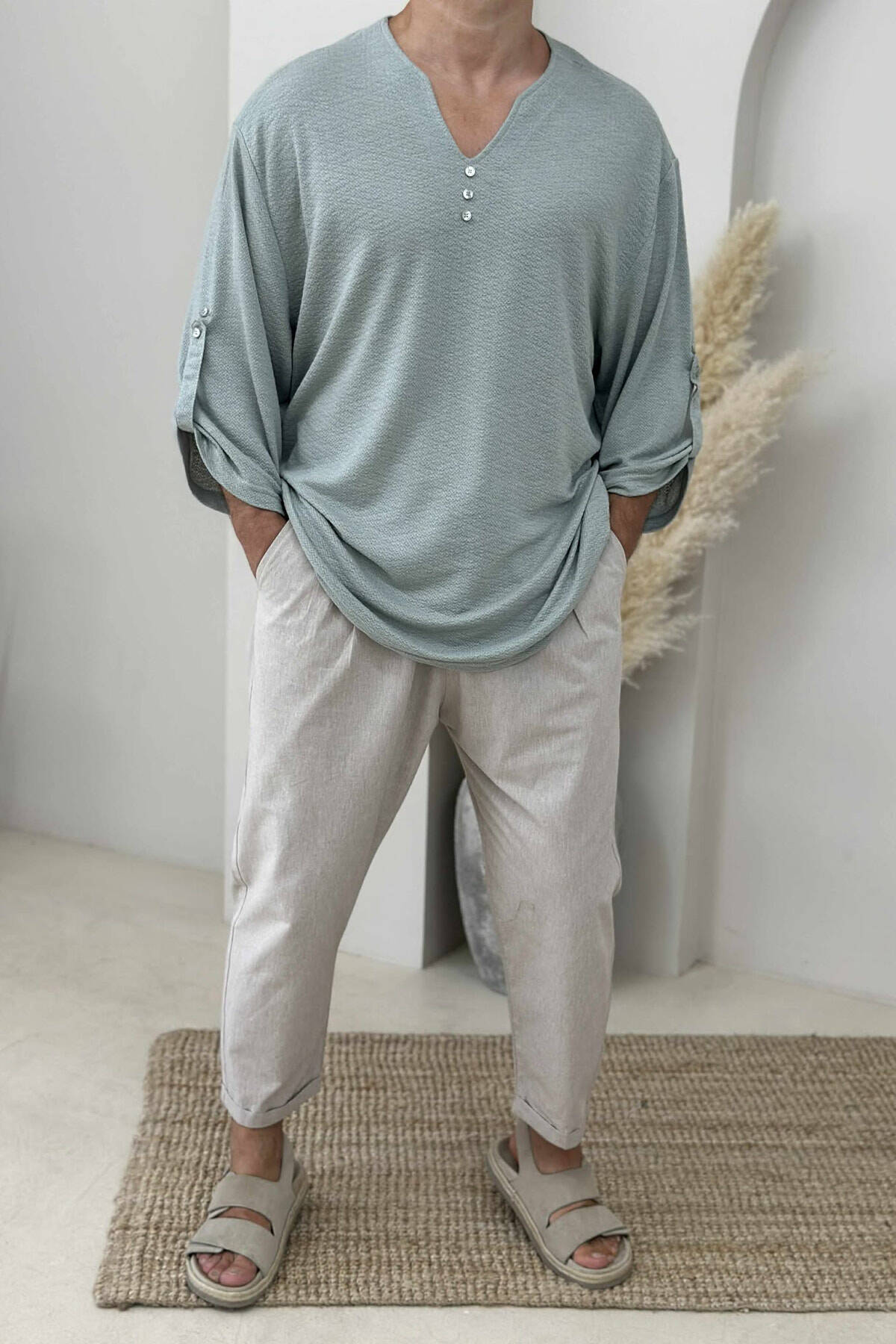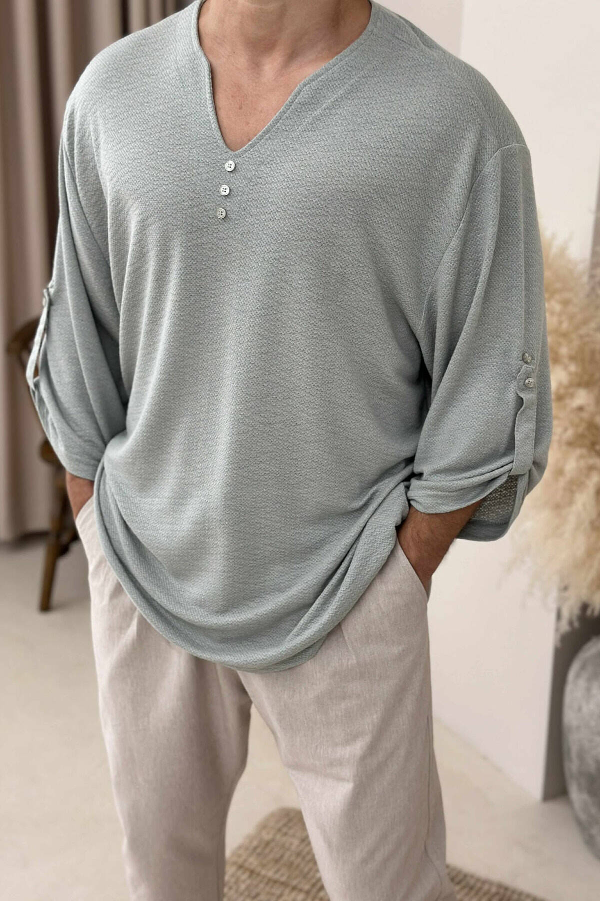 T-SHIRT NJË NGJYRËSH ME DETAJIN KOPSAVE PËR MESHKUJ NË NGJYRËN MENTE