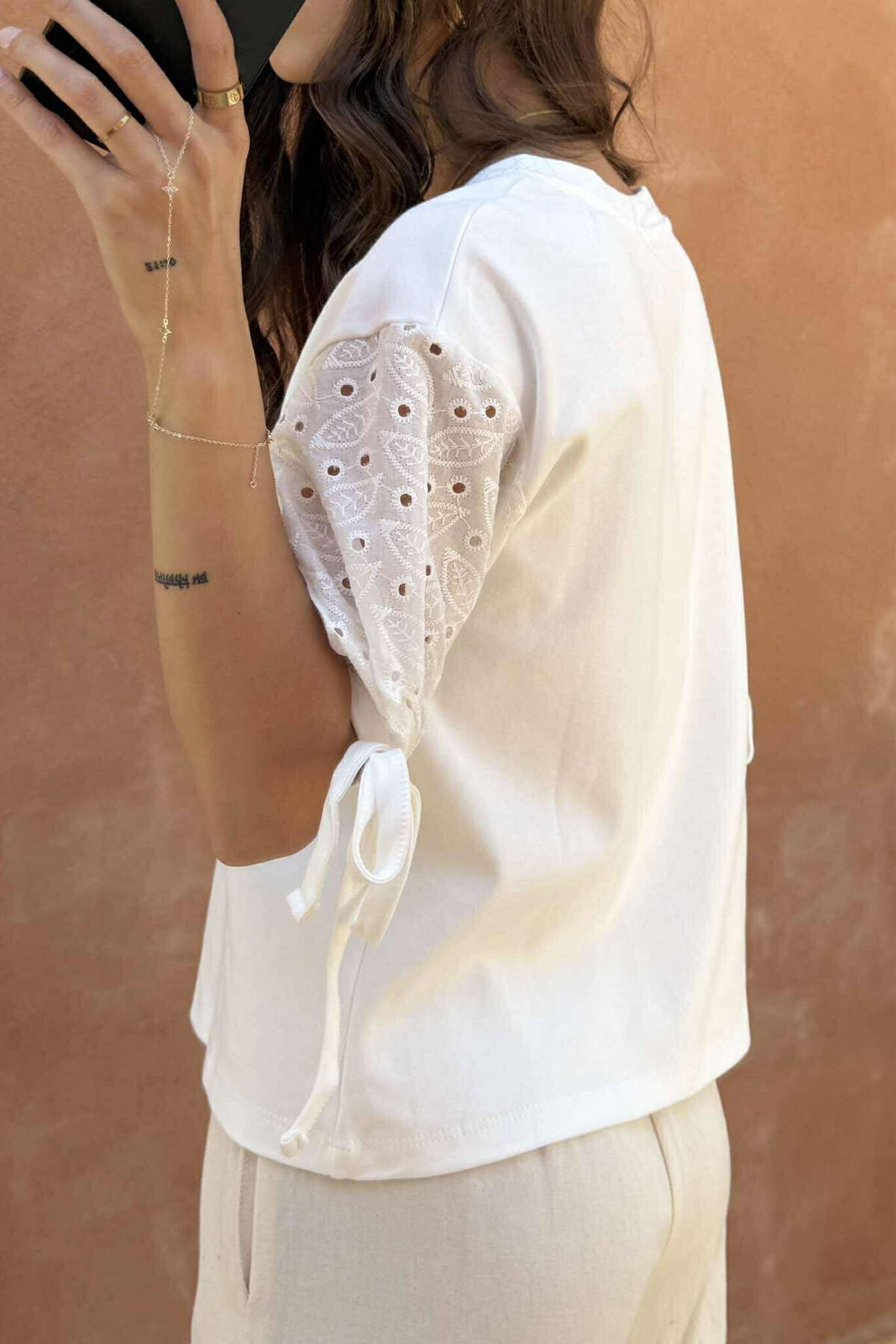 T-SHIRT NJË NGJYRËSH ME DETAJIN E LIDHSES PËR FEMRA NË NGJYRËN E BARDHË