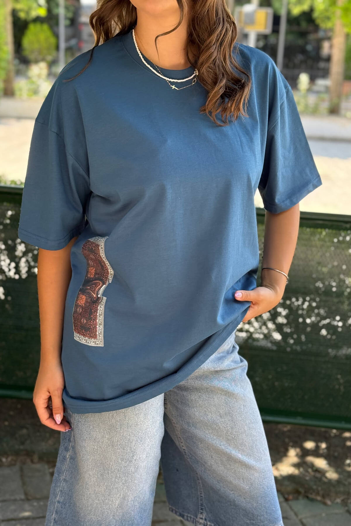 T-SHIRT I THJESHTË ME IMAZH PËR FEMRA NË NGJYRËN UTHULL