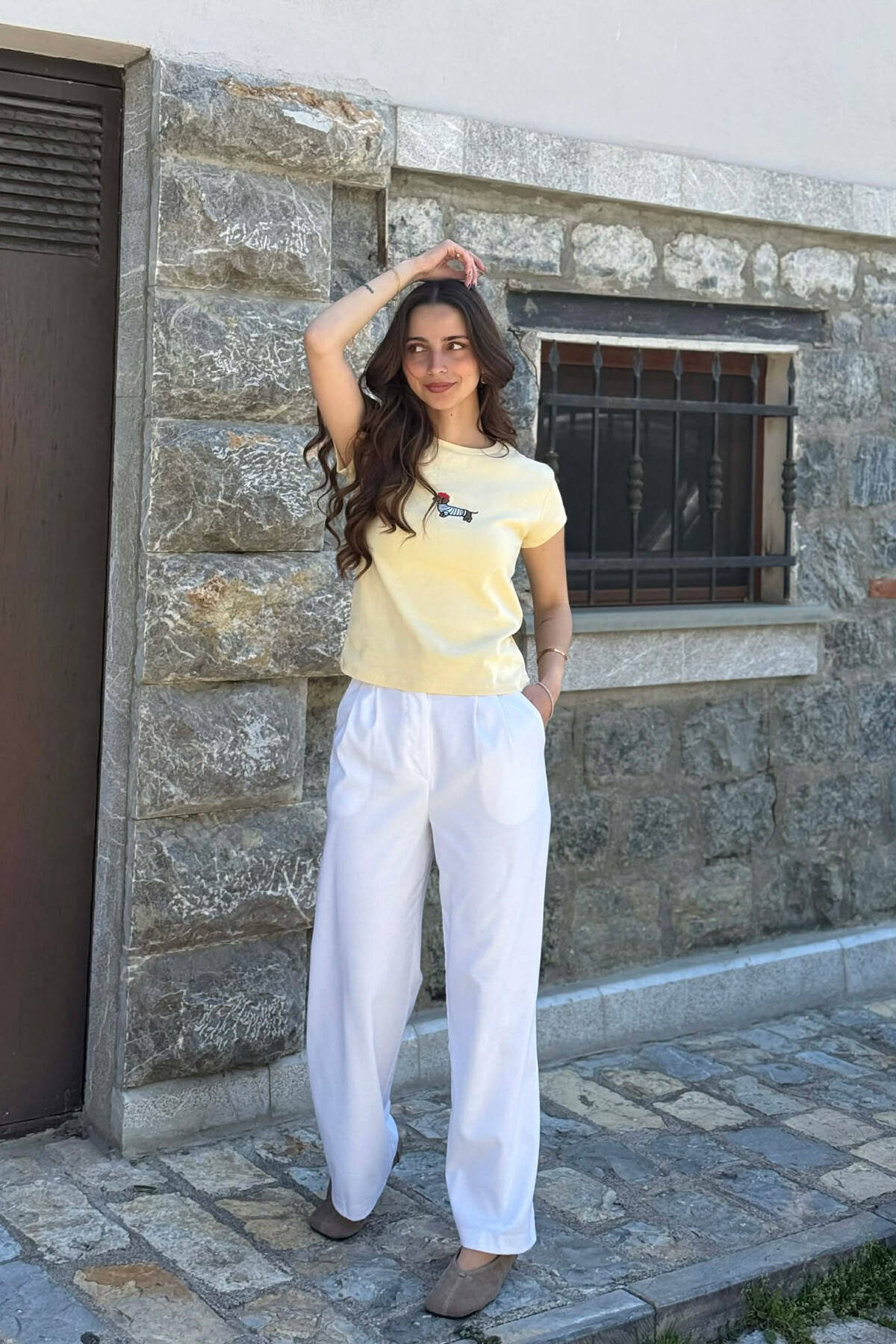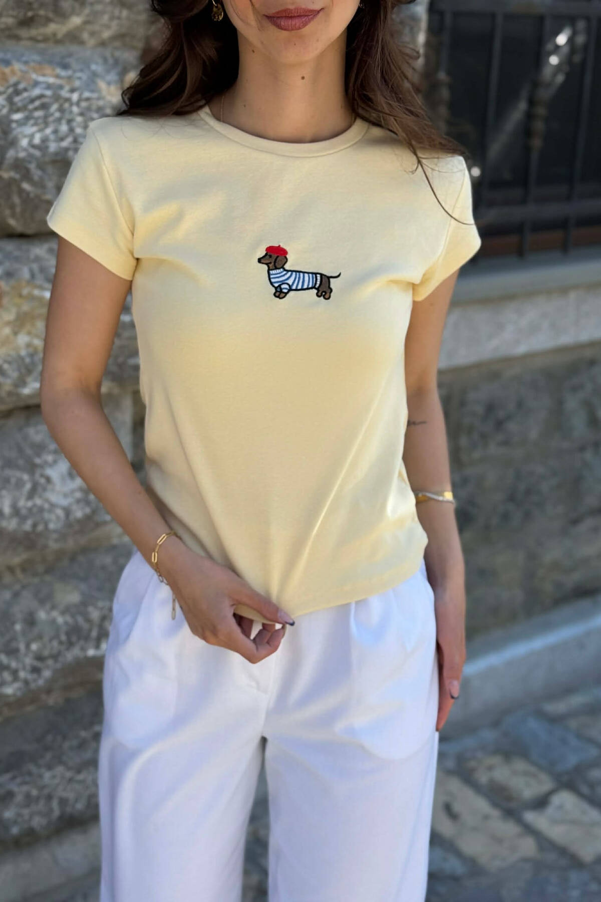 T-SHIRT NJE NGJYRESH ME IMAZH NE PJESEN PARA PER FEMRA NE NGJYRE TE VERDHE
