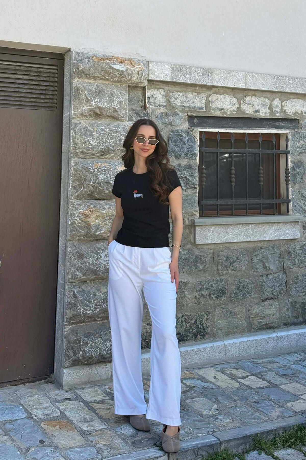 T-SHIRT ME DIZAJN PER FEMRA NE NGJYRE KAFE