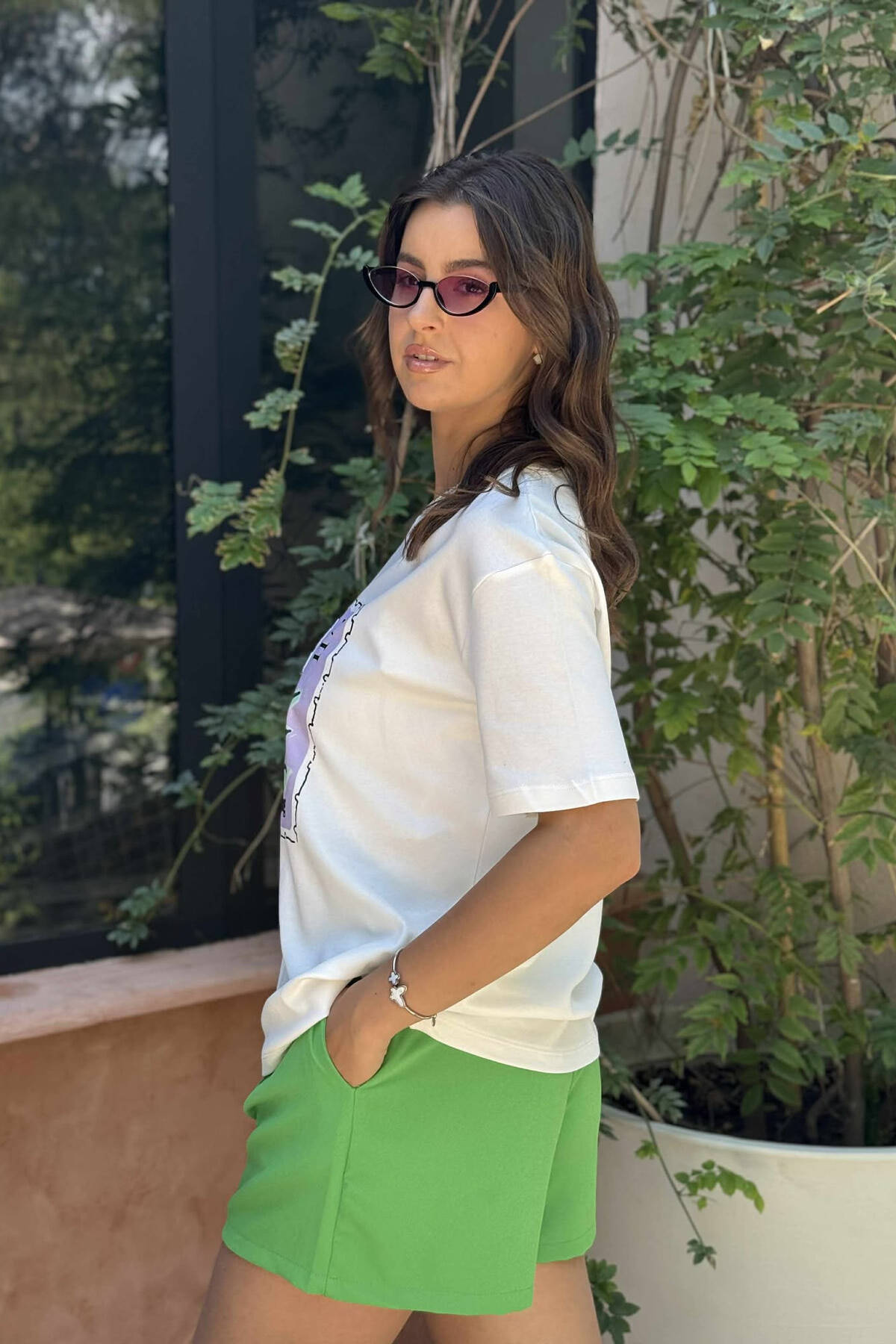 T-SHIRT NJË NGJYRËSH ME IMAZH PËR FEMRA NË NGJYRËN E BARDHË