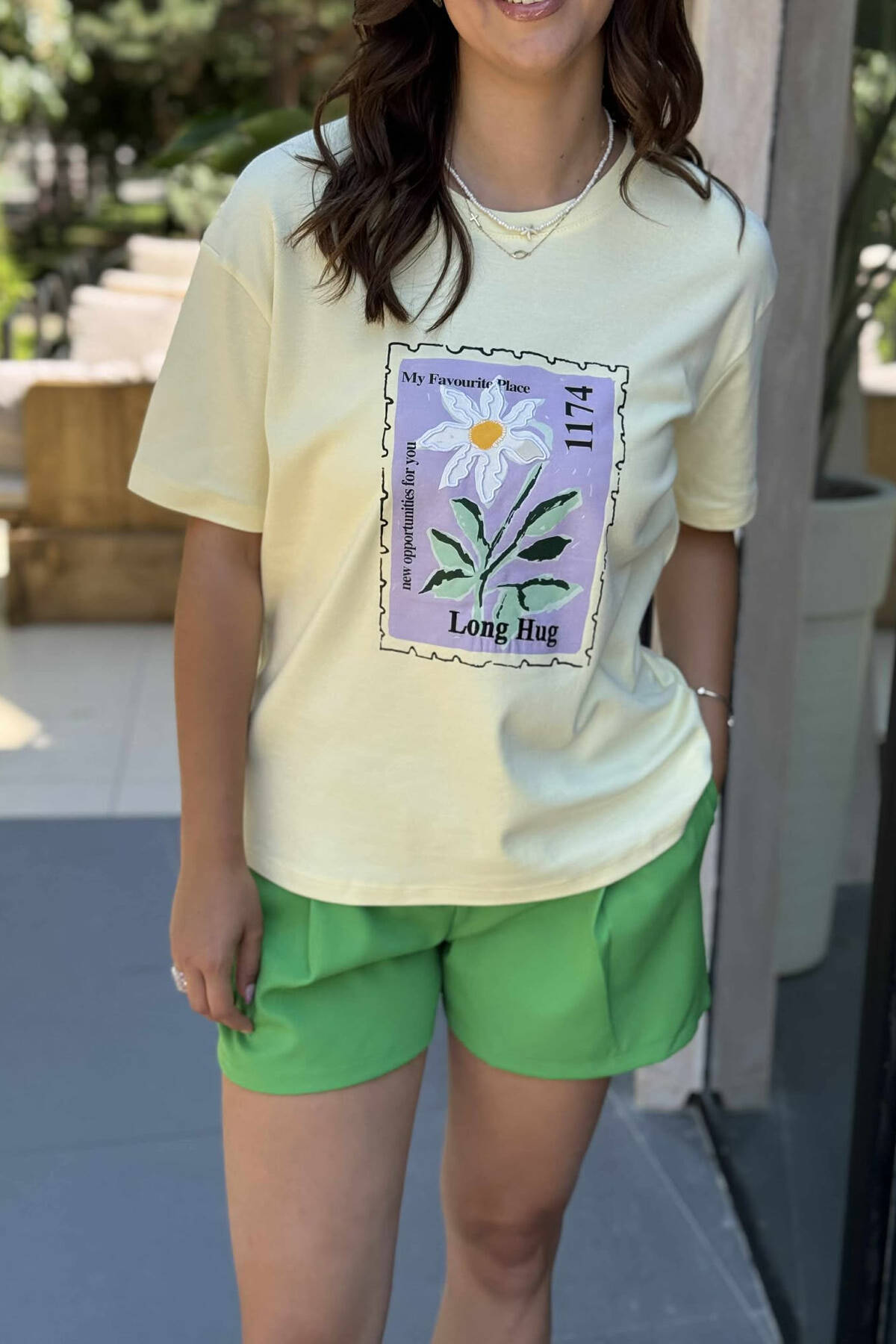 T-SHIRT NJË NGJYRËSH ME IMAZH PËR FEMRA NË NGJYRËN E VERDHË
