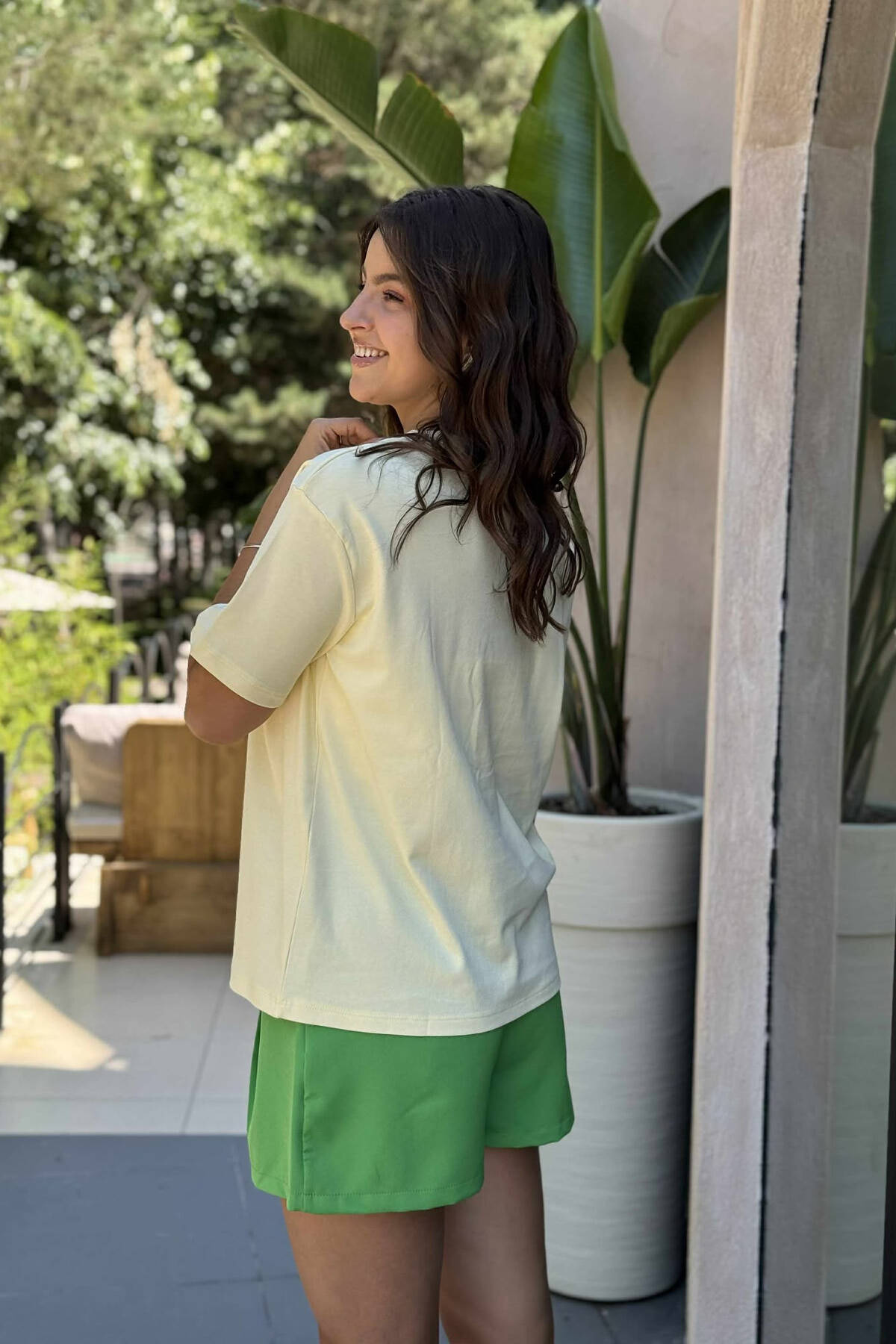 T-SHIRT NJË NGJYRËSH I THJESHTË PËR FEMRA NË NGJYRËN E VERDHË