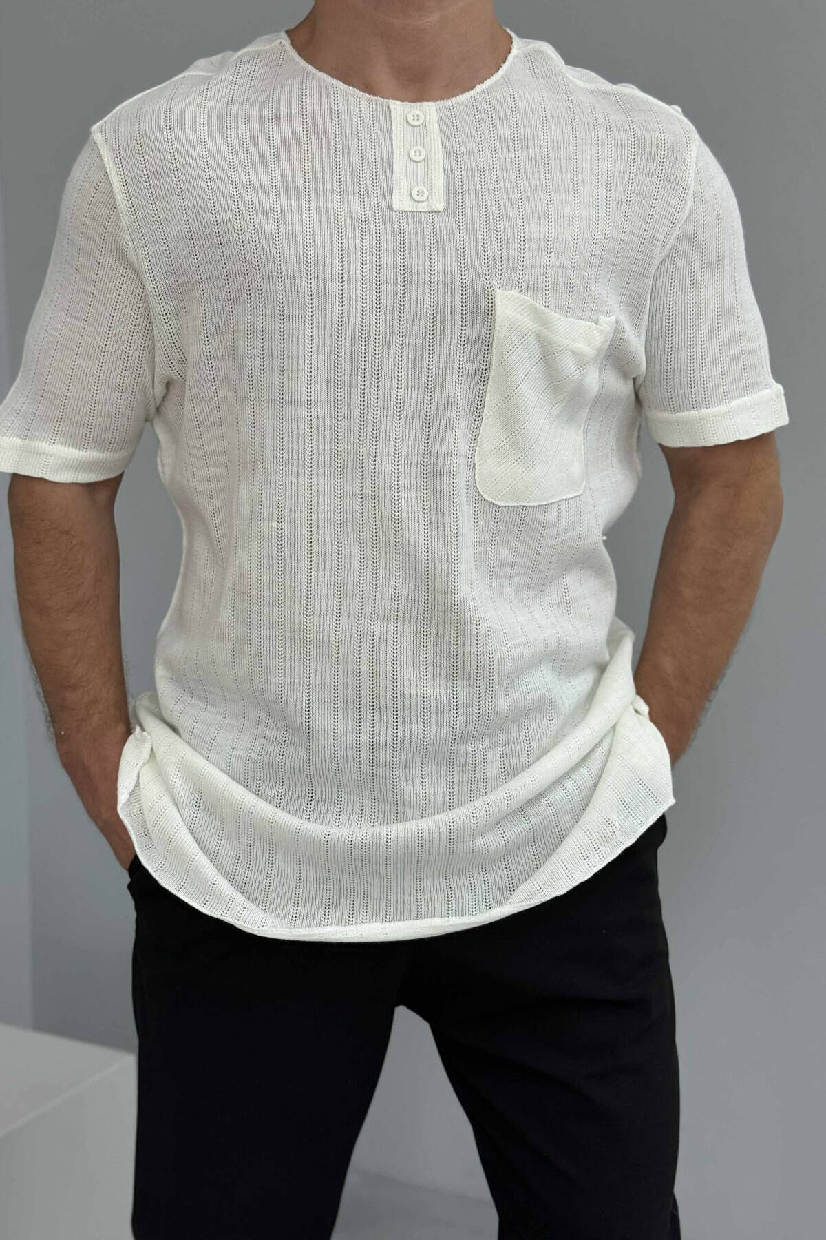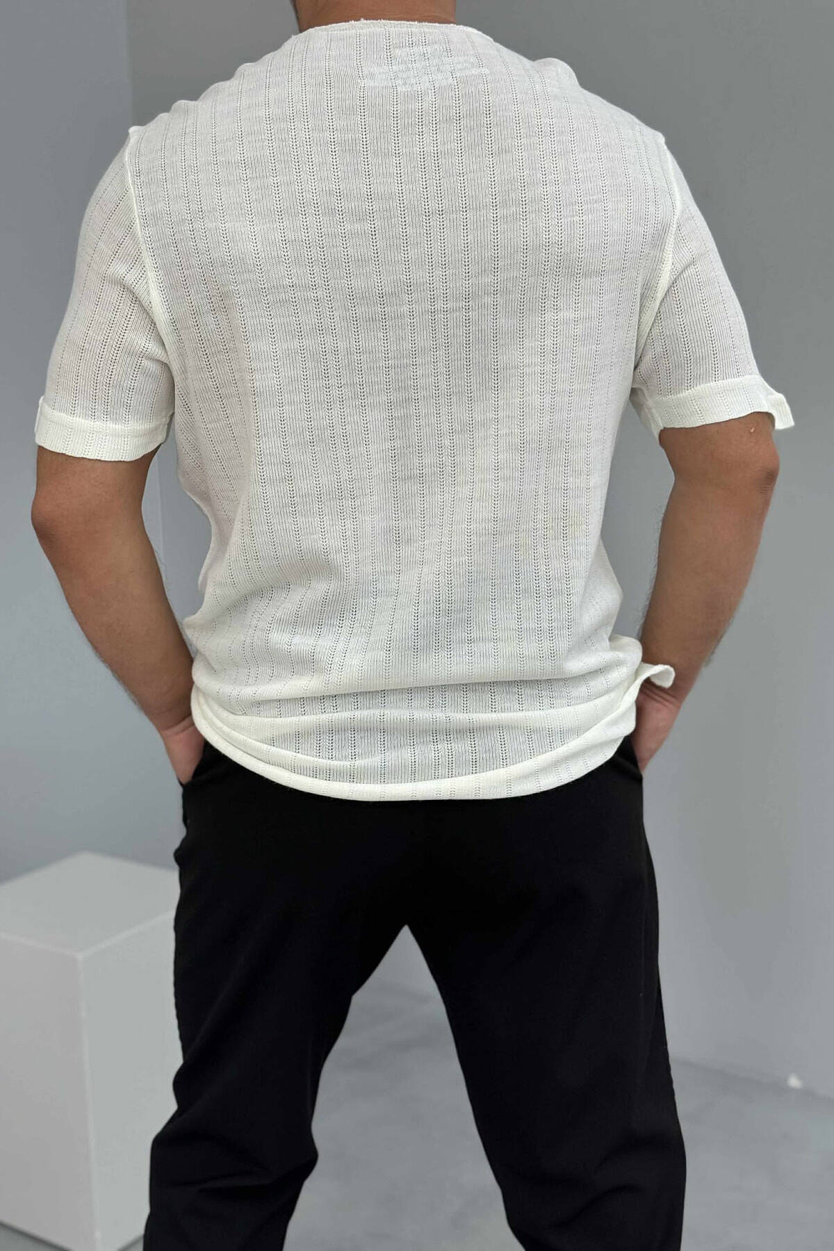 T-SHIRT NJË NGJYRËSH ME KOPSA PËR MESHKUJ NË NGJYRËN KREM