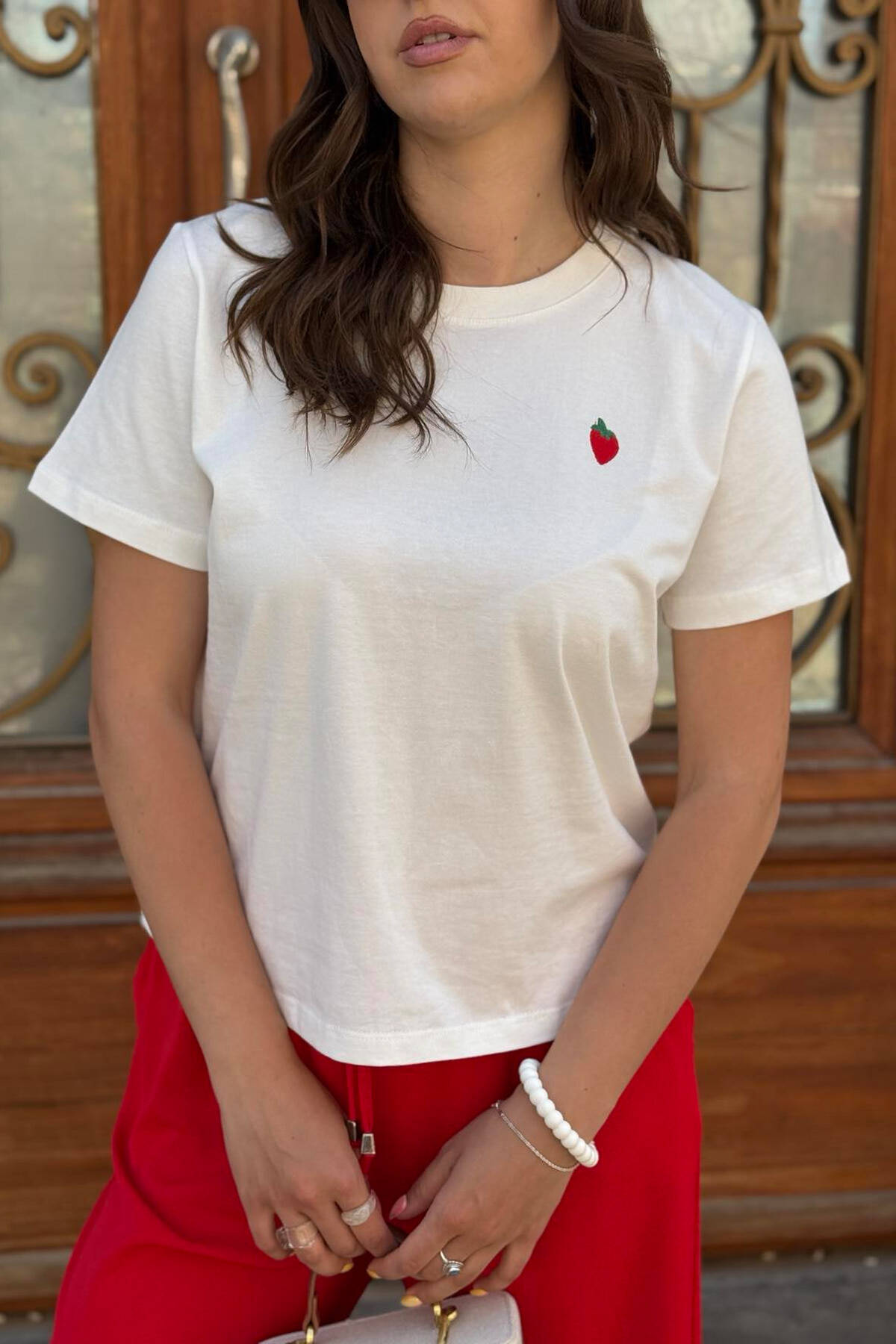 T-SHIRT NJË NGJYRËSH I THJESHTË PËR FEMRA NË NGJYRËN E BARDHË