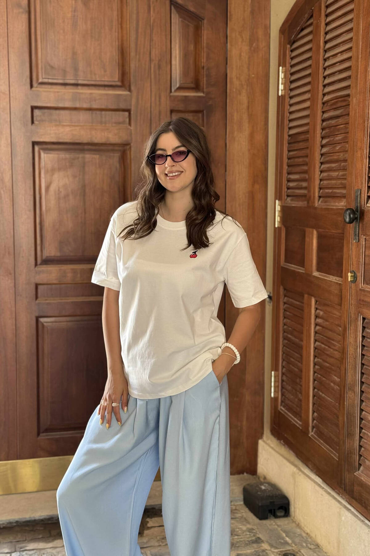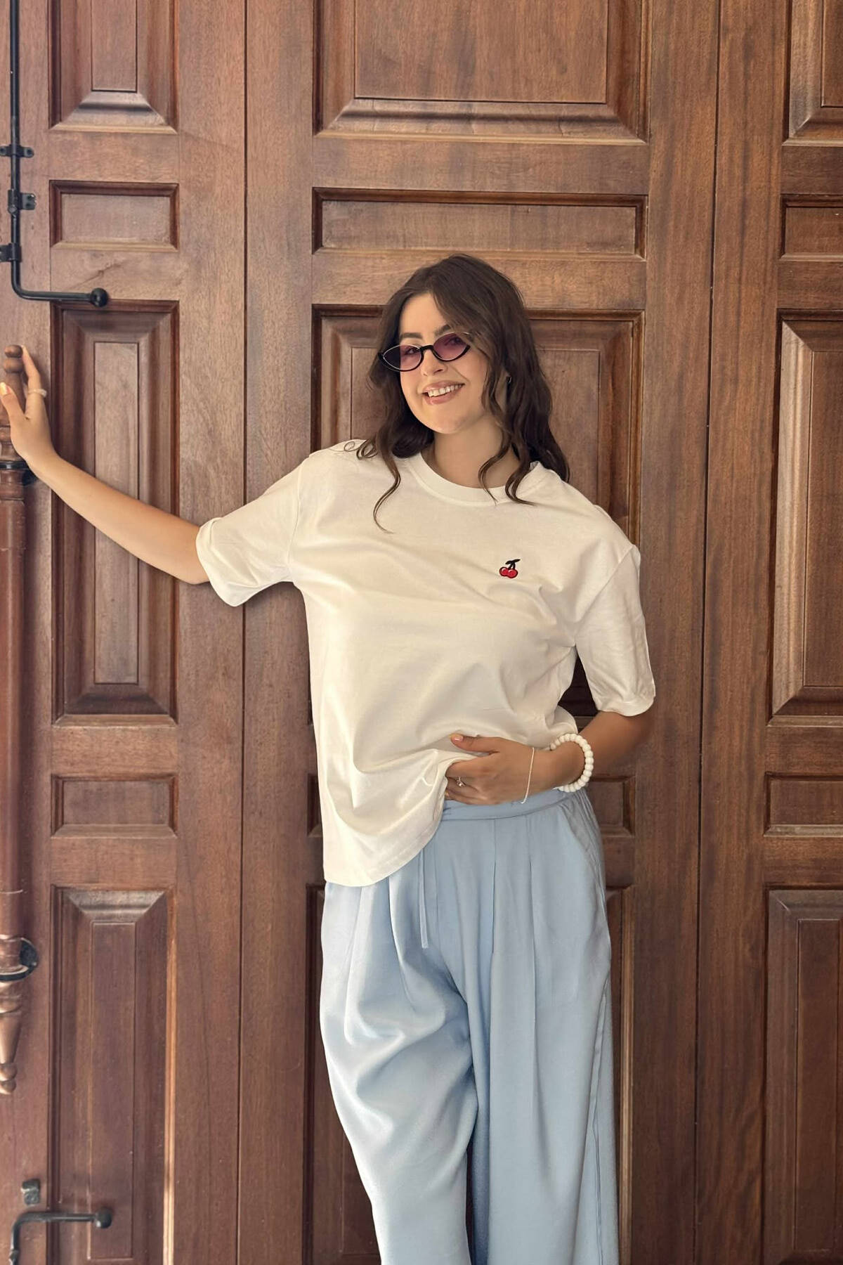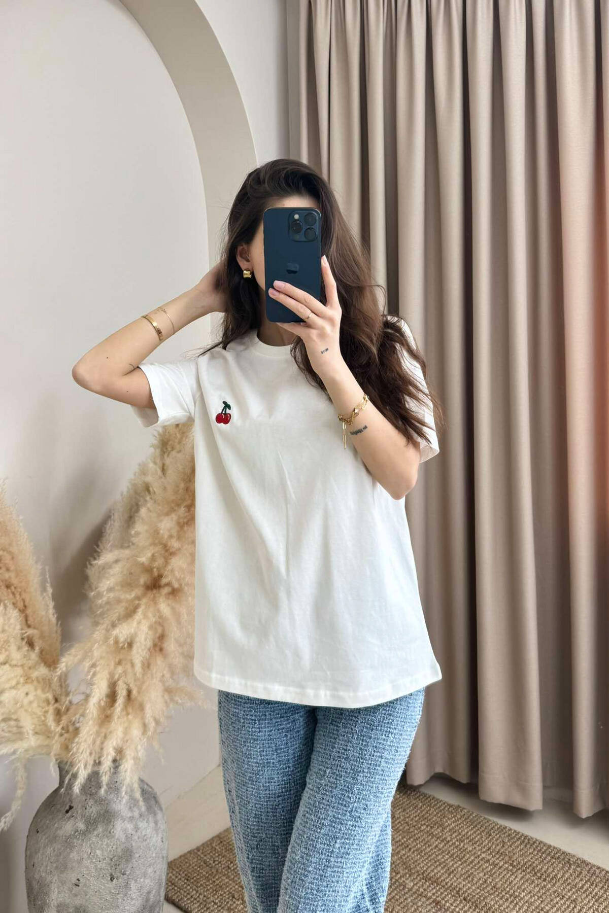 T-SHIRT NJË NGJYRËSH ME LOGON E QERSHISË PËR FEMRA NË NGJYRËN E BARDHË