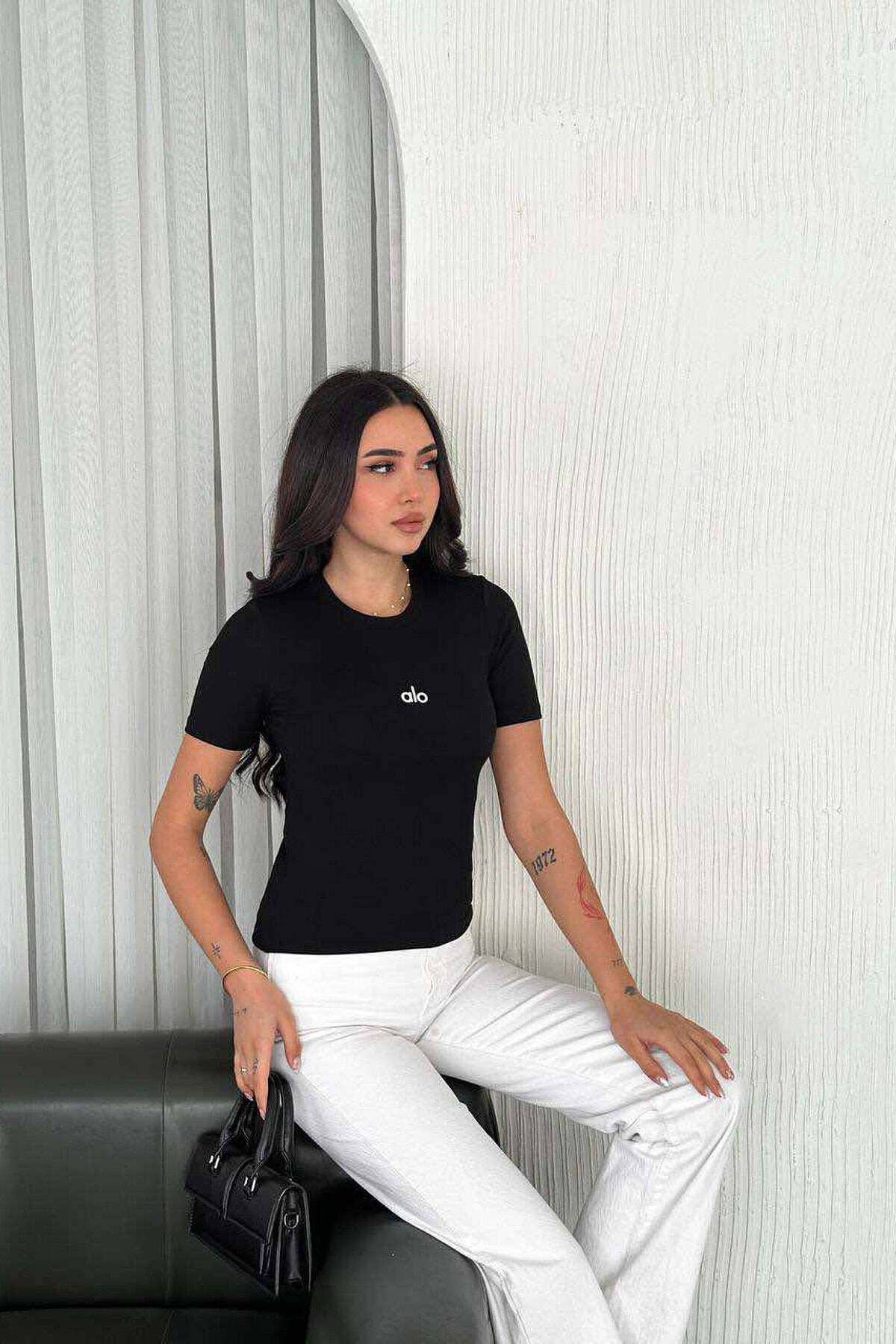 T-SHIRT NJË NGJYRËSH ME SHKRIM PËR FEMRA NË NGJYRËN E ZEZË