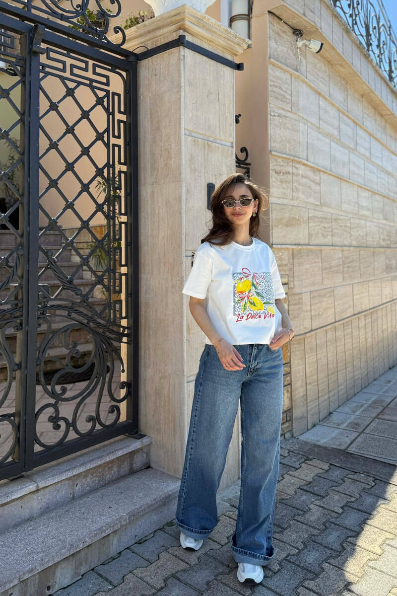 T-SHIRT NJE NGJYRESH ME SHKRIME PER FEMRA NE NGJYRE TE BARDHE