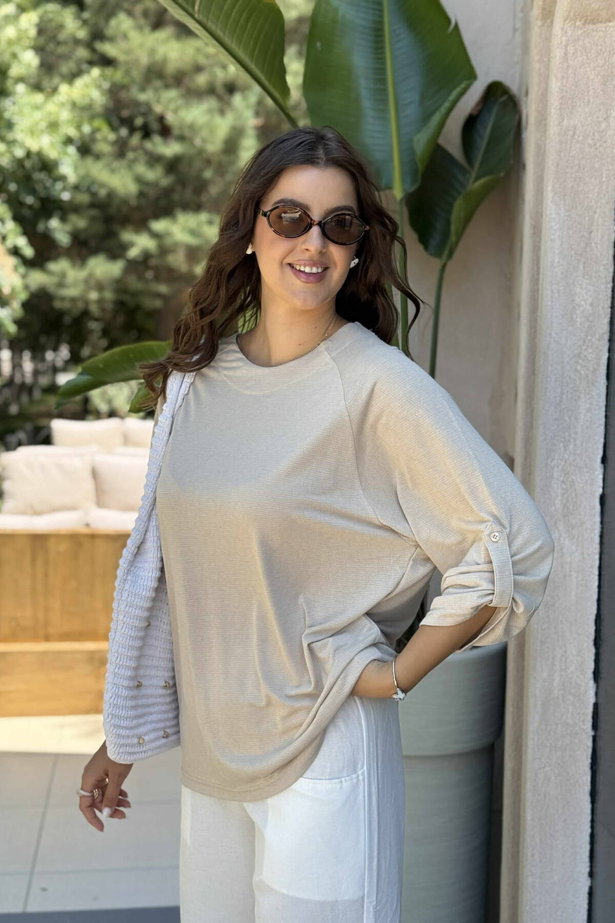 T-SHIRT NJË NGJYRËSH PËR FEMRA NË NGJYRËN BEZHË