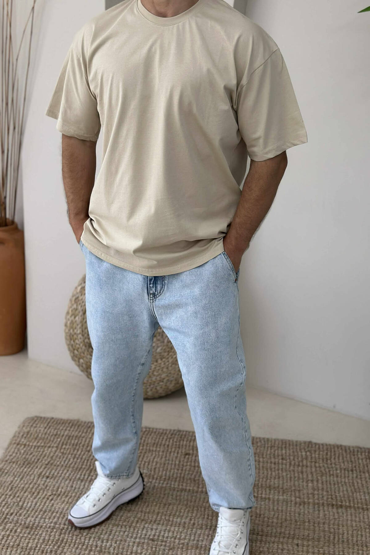 T-SHIRT NJË NGJYRËSH PËR MESHKUJ NË NGJYRËN BEZHË