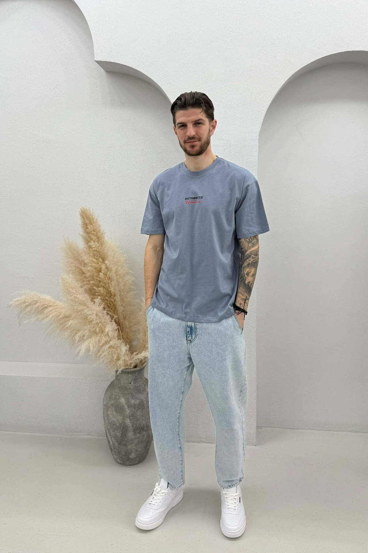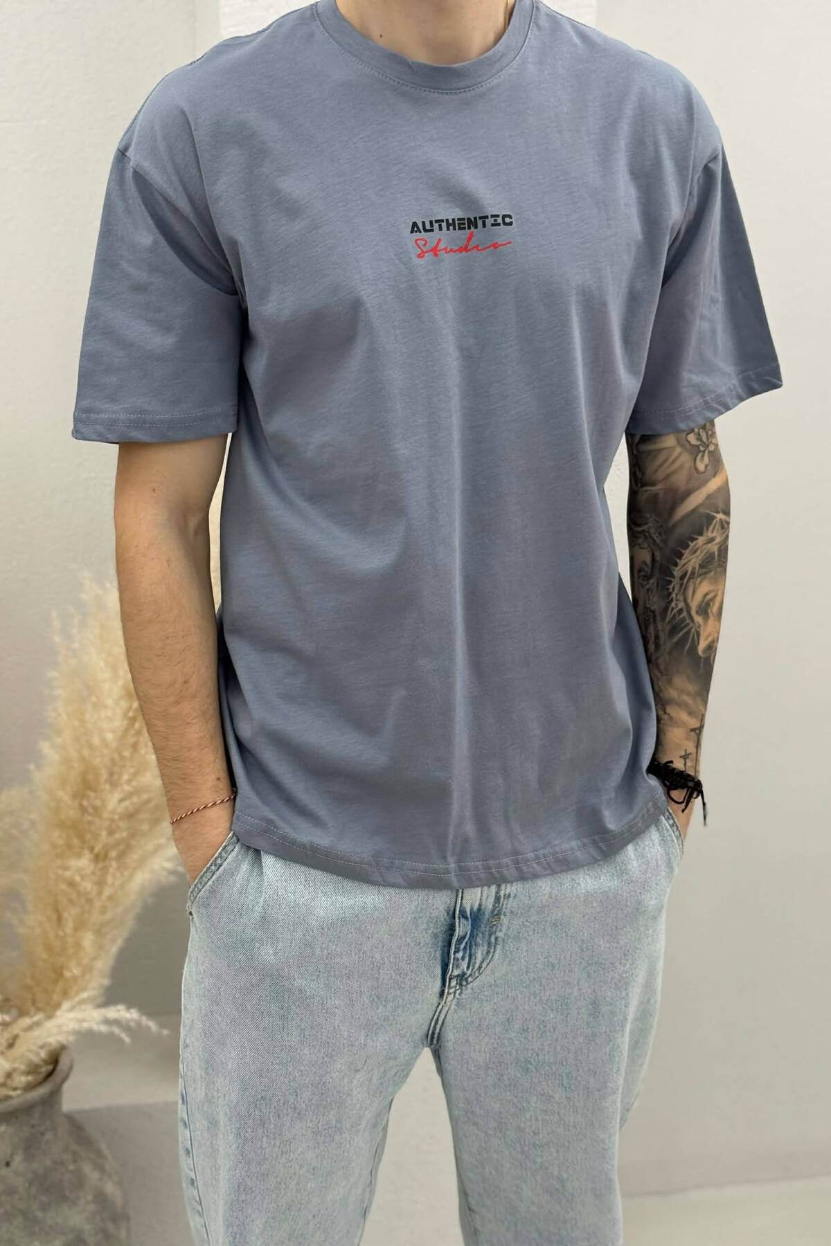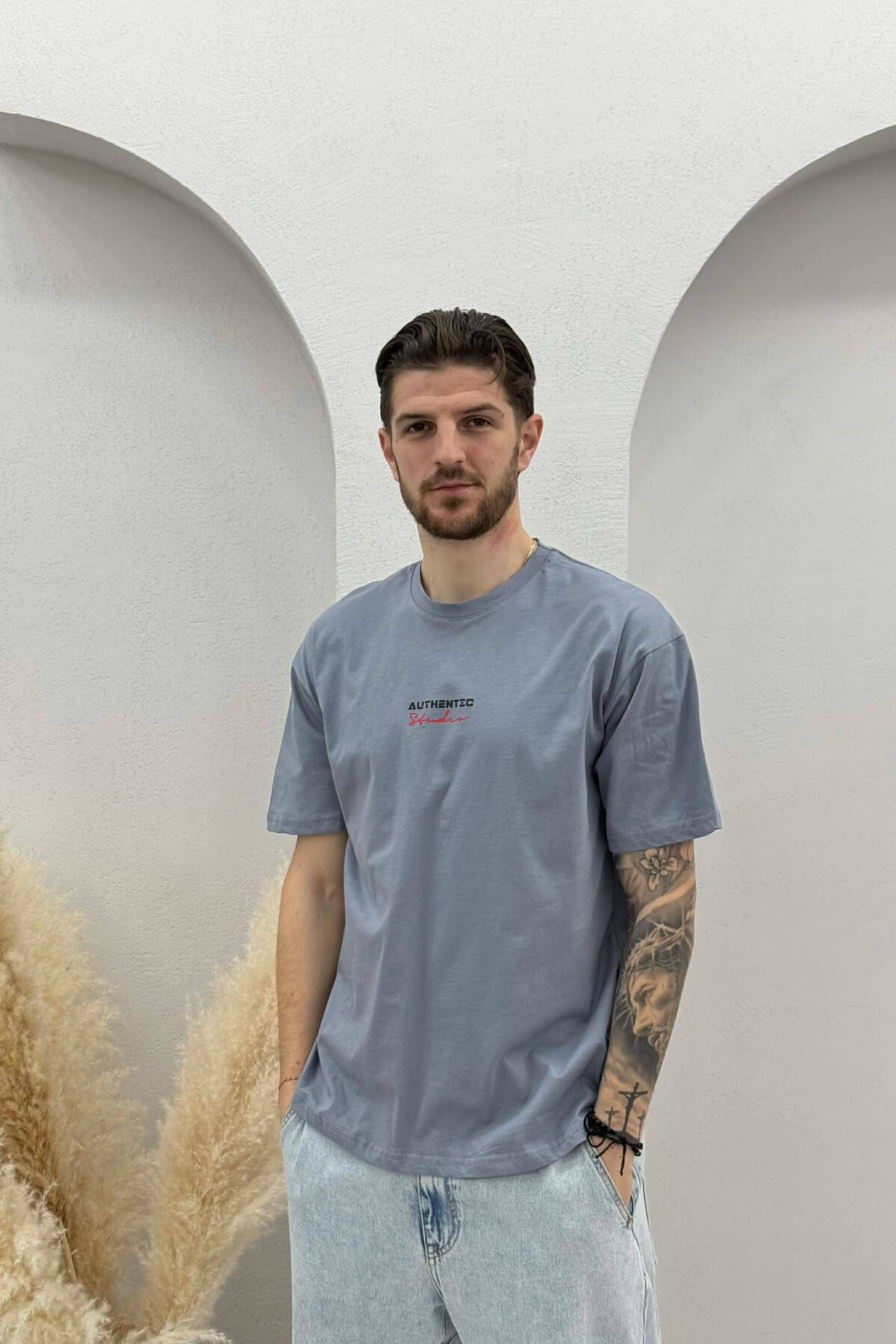 T-SHIRT I THJESHTË ME SHKRIME PËR MESHKUJ NË NGJYRËN PUDER