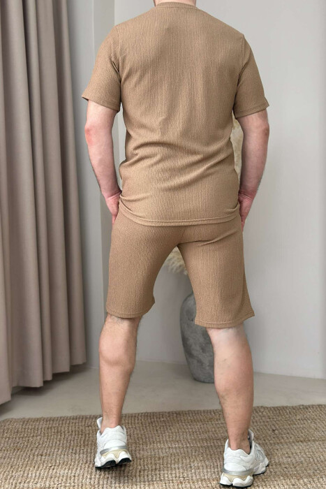 SET NJË NGJYRËSH T-SHIRT+TUTA TË SHKURTRA PËR MESHKUJ NË NGJYRËN KAFE E ZBARDHUR