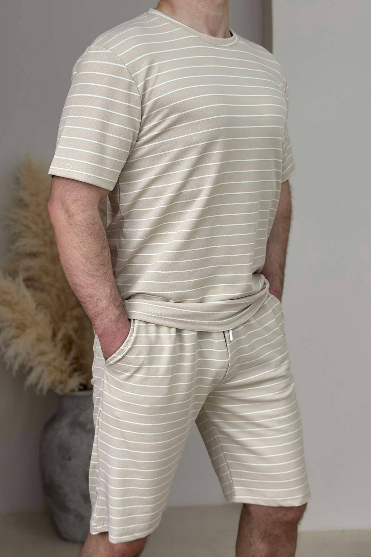 SET ME VIJA T-SHIRT+TUTA TË SHKURTRA PËR MESHKUJ NË NGJYRËN BEZHË