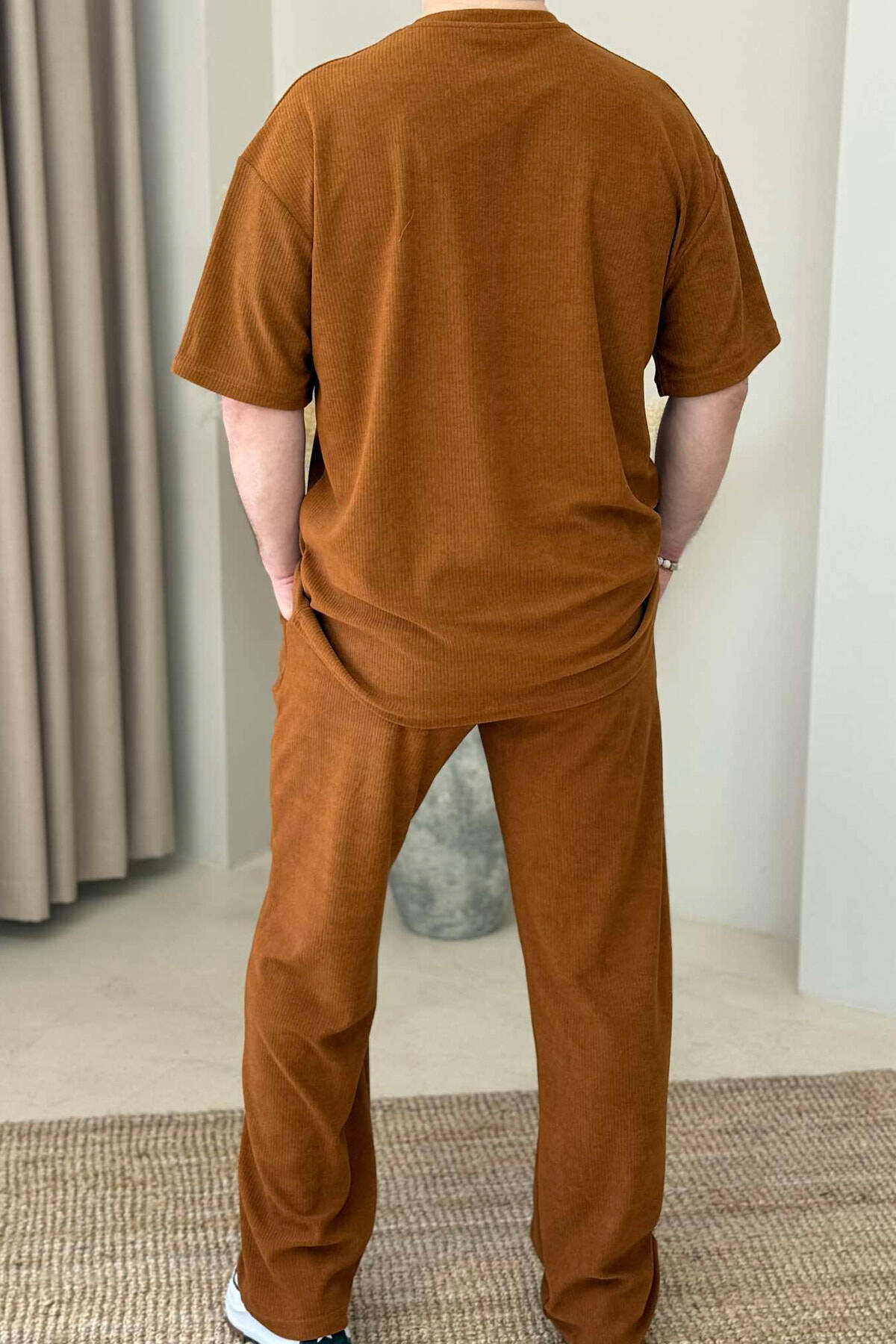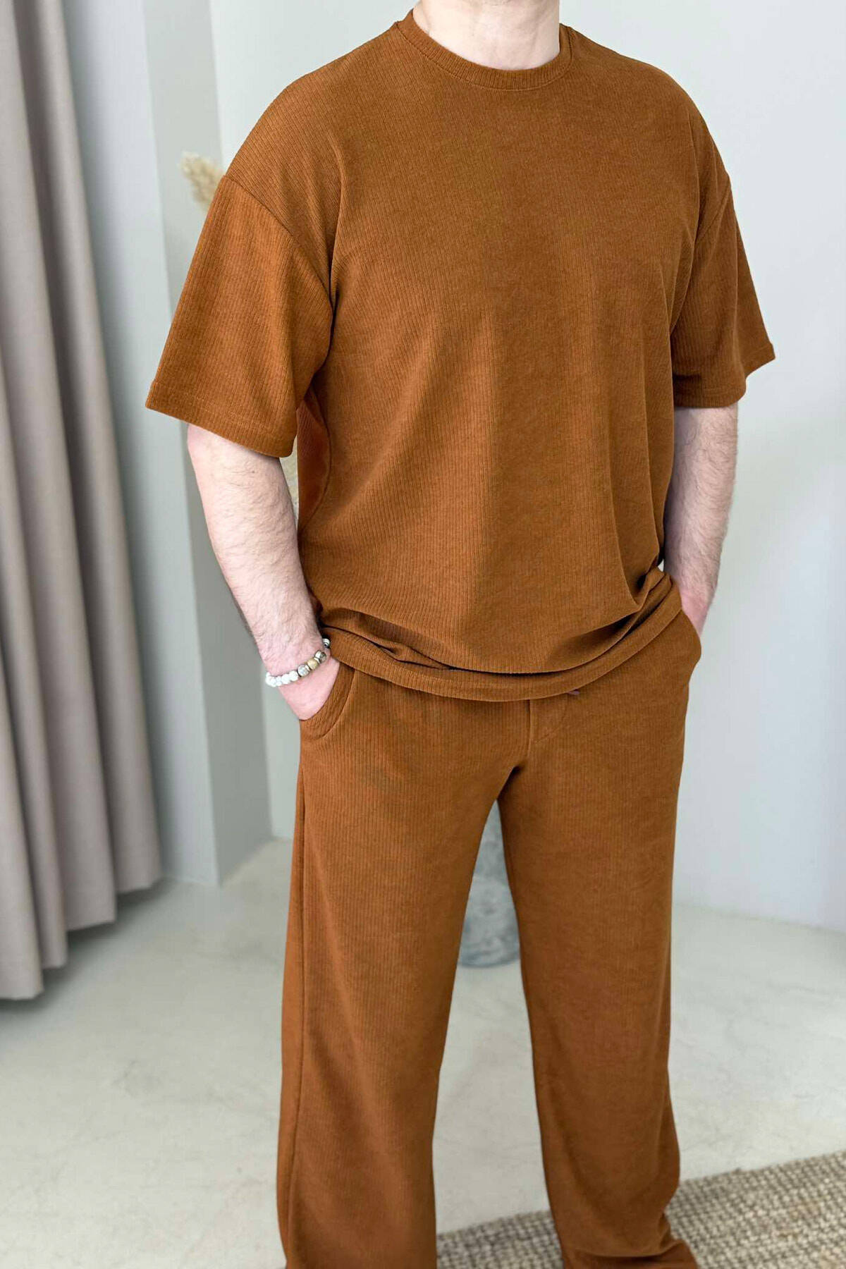 T-SHIRT+SWEATPANTS ONE COLOR TEXTURED MEN SET BRICK/TULLE