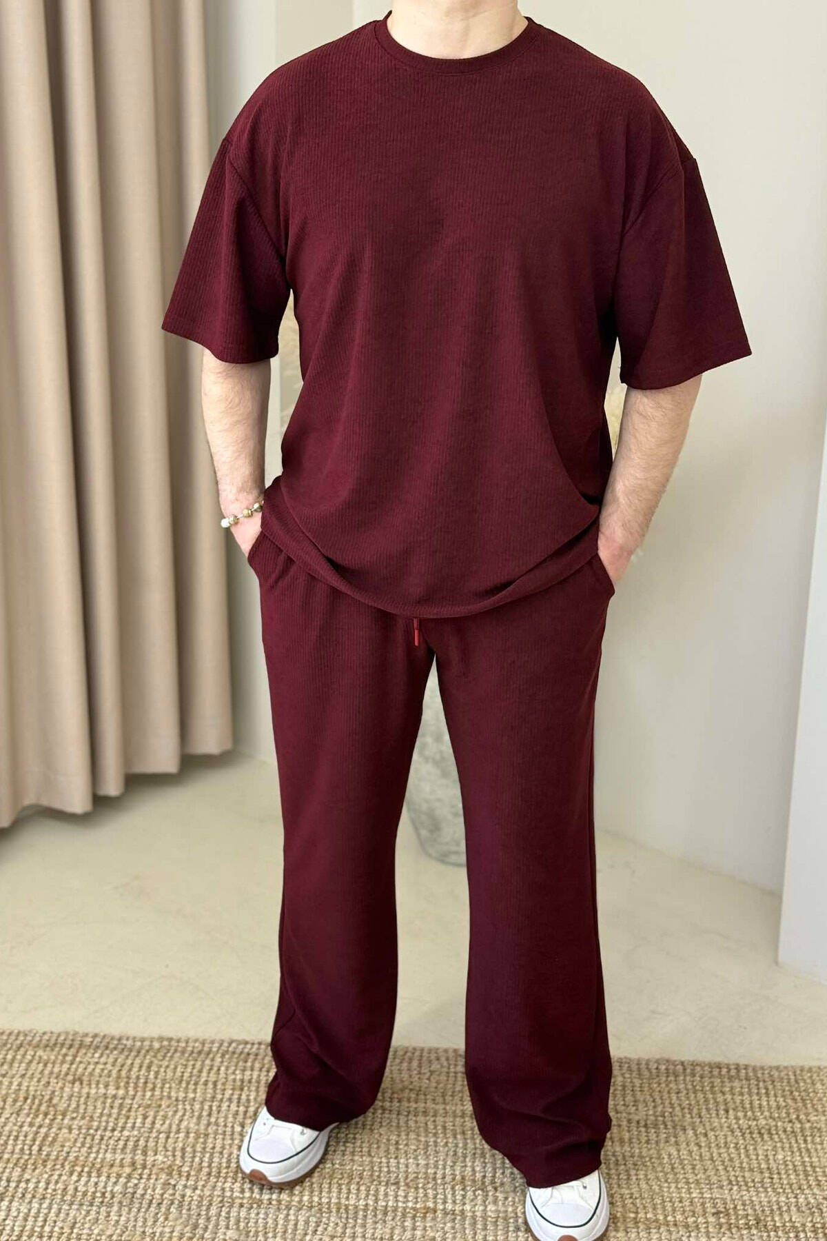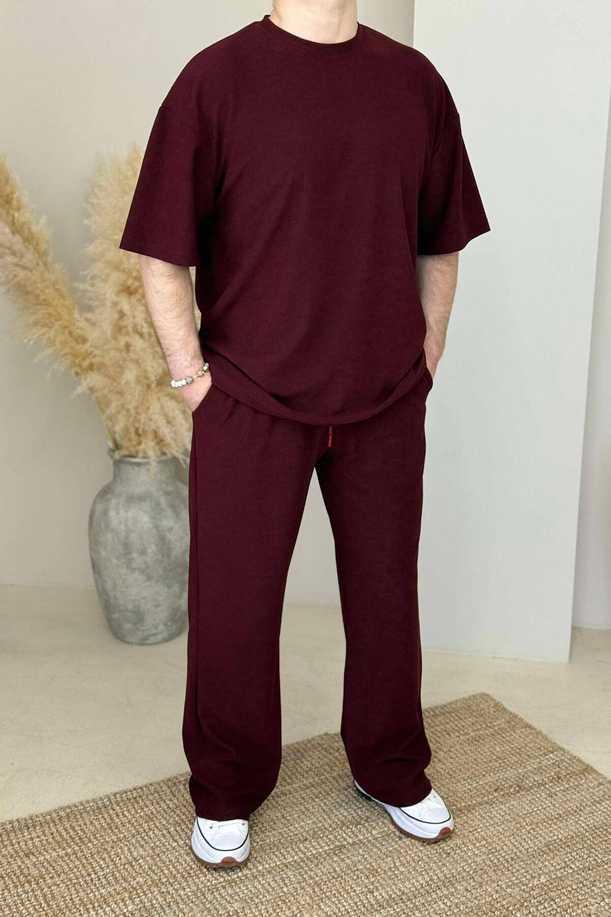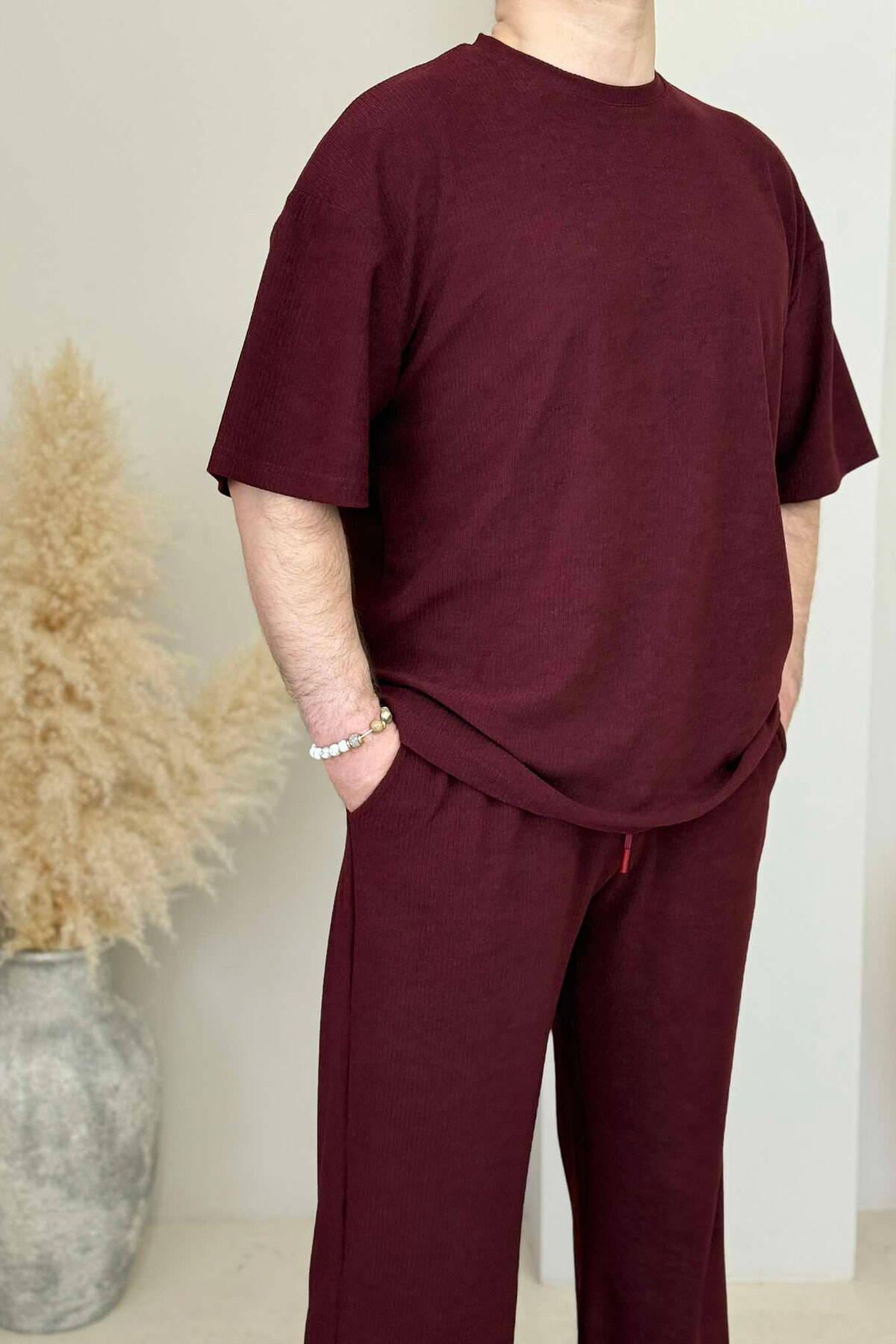 T-SHIRT+SWEATPANTS ONE COLOR TEXTURED MEN SET BURGUNDY/VISHNJE