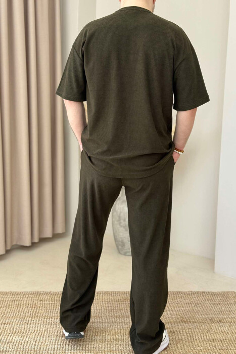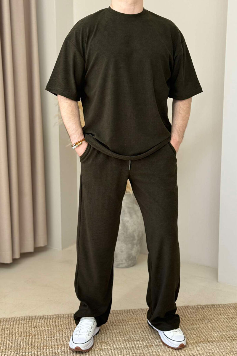 T-SHIRT+SWEATPANTS ONE COLOR TEXTURED MEN SET GREEN/JESHILE
