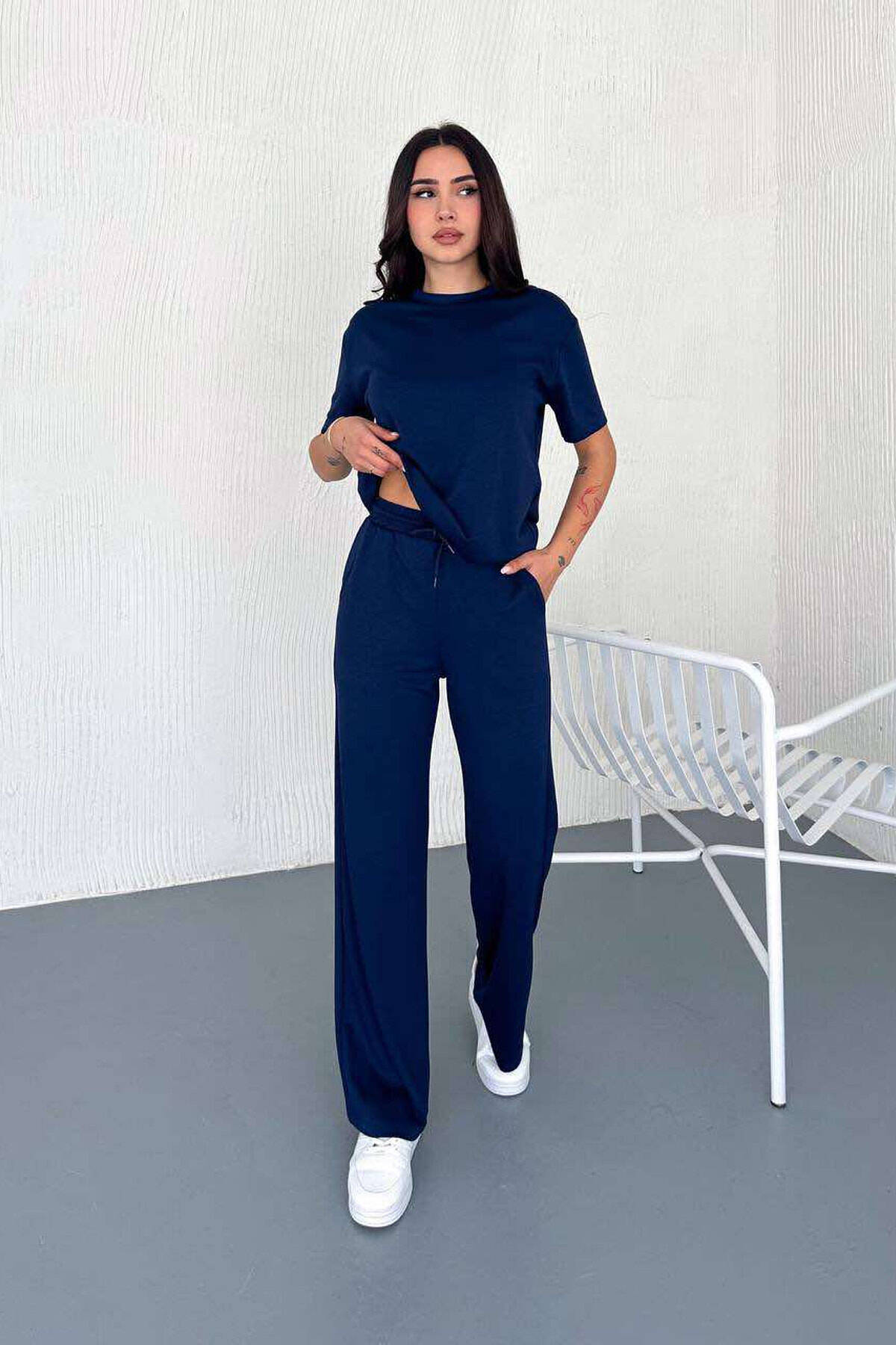 T-SHIRT+WIDE LEG SWEATPANTS ONE COLOR WOMEN SET BLUE/BLU
