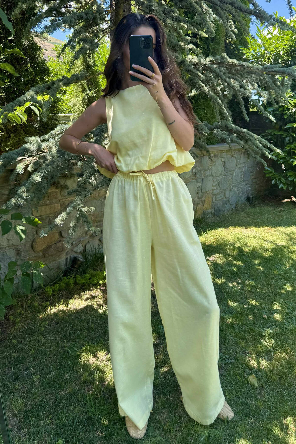 TANK TOP+TROUSERS BACK ZIPPER DETAIL WOMEN SET YELLOW/E VERDHE