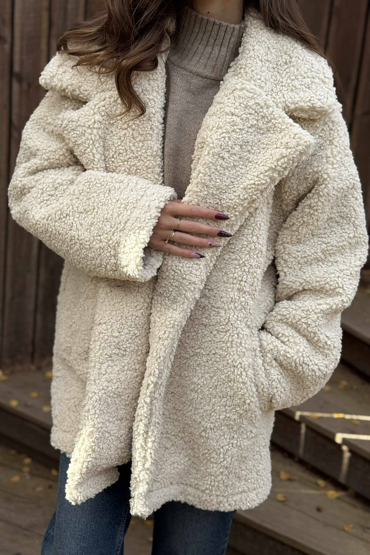 SIMPLE FLUFFY WOMEN JACKET CREAM/KREM