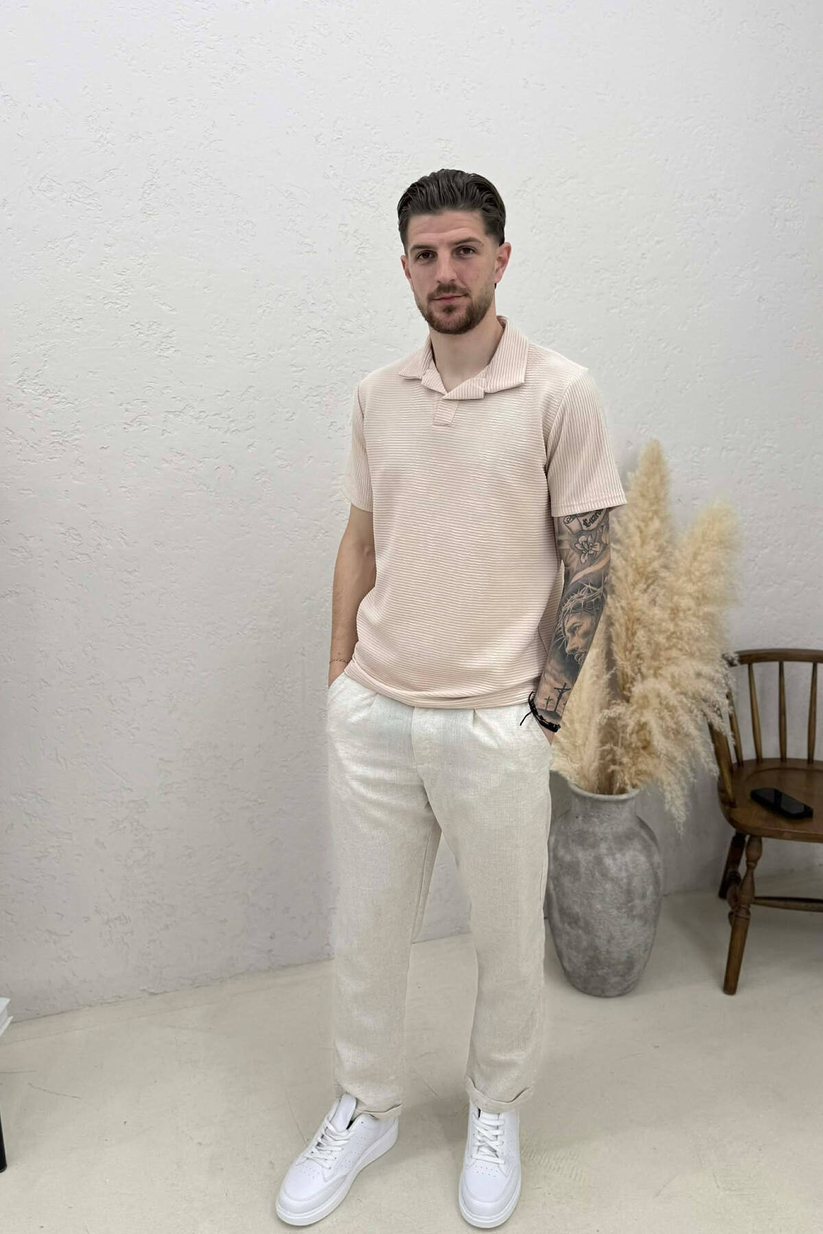 TEXTURED POLO NECK MEN T-SHIRT BEIGE/BEZHE