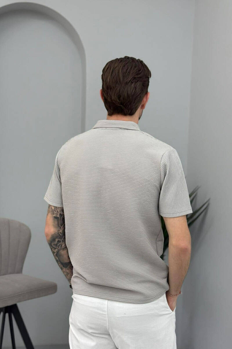 TEXTURED POLO NECK MEN T-SHIRT LIGHT GREY/GZ