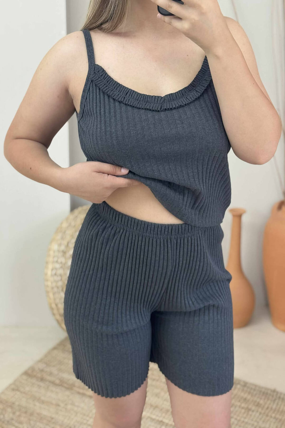 THIN STRAP TANK TOP+SHORTS WOMEN PYJAMAS DARK GREY/GEE