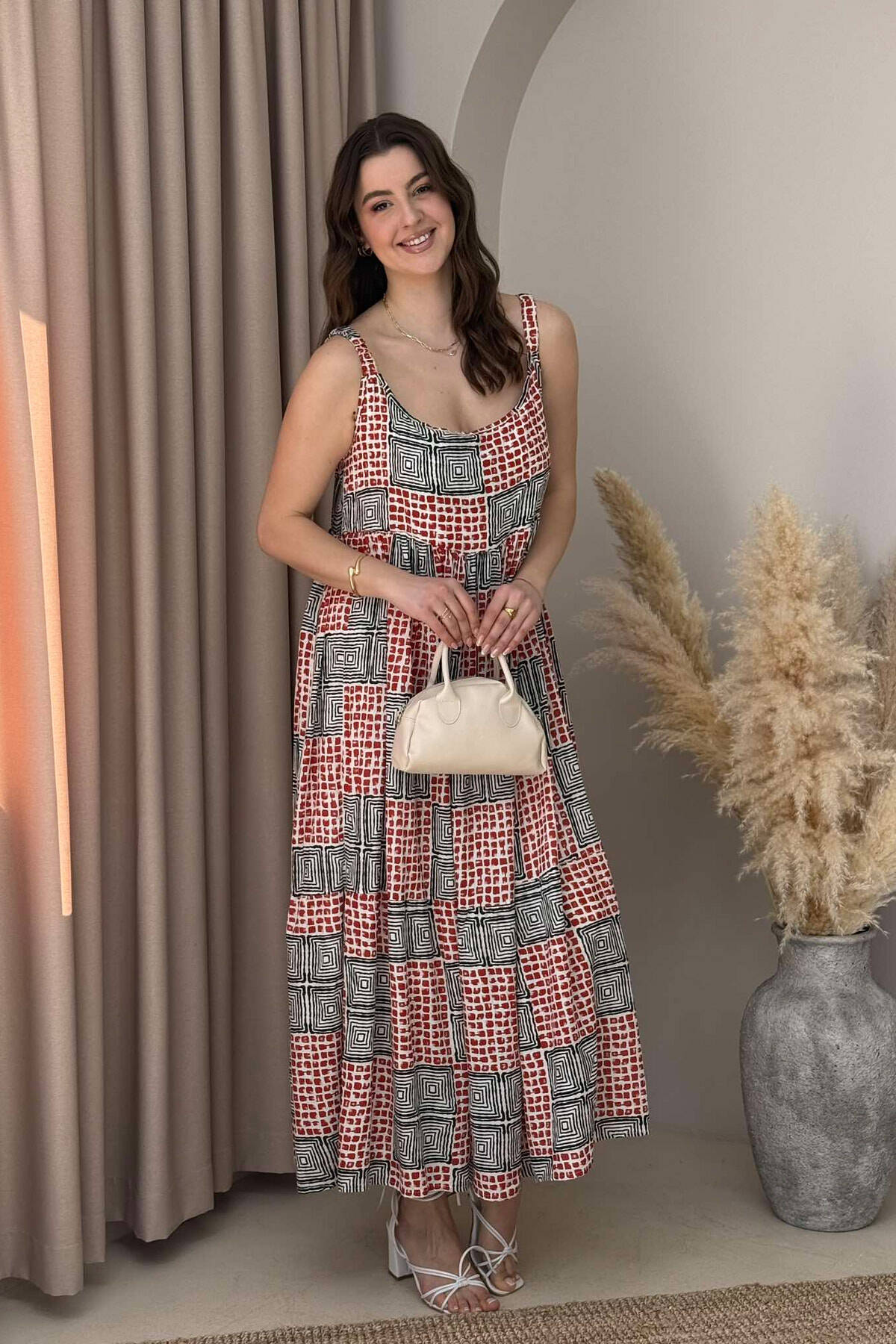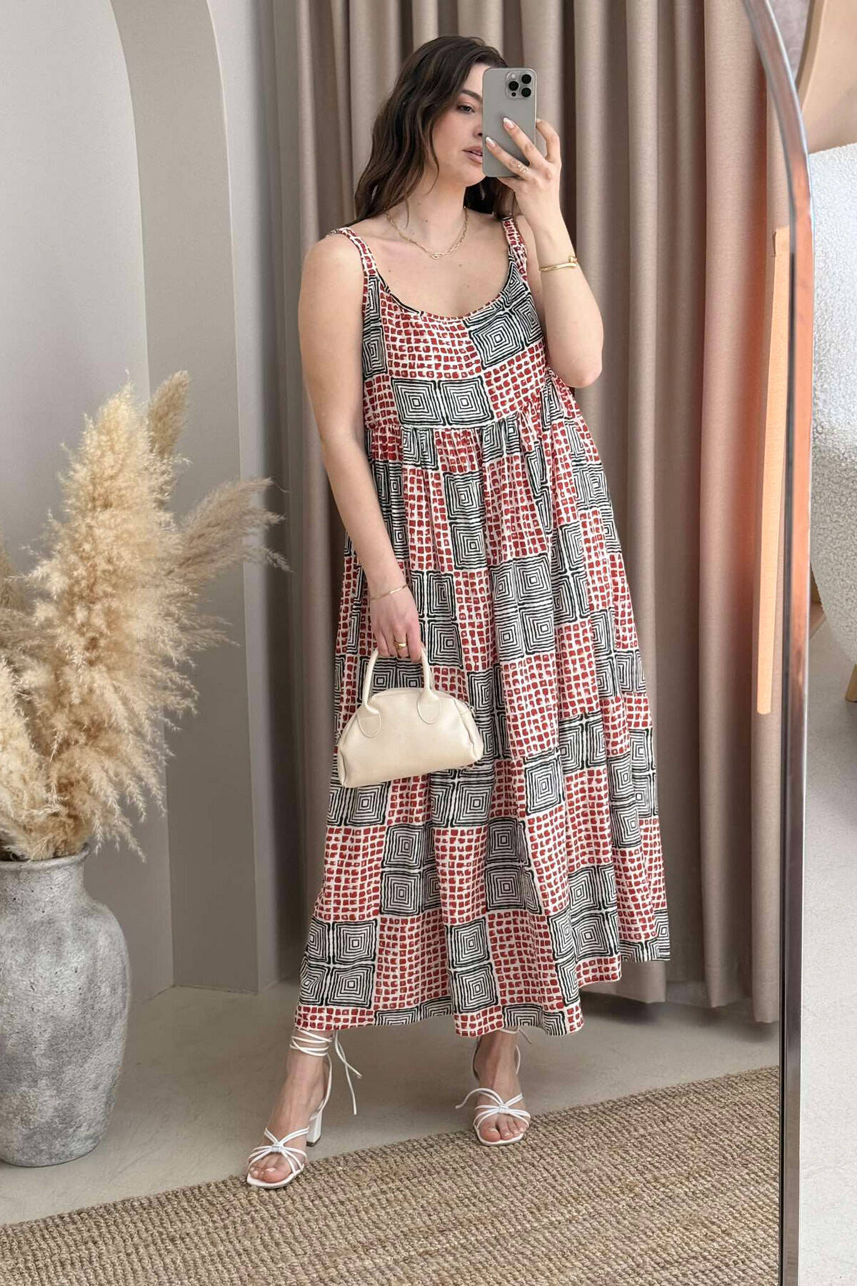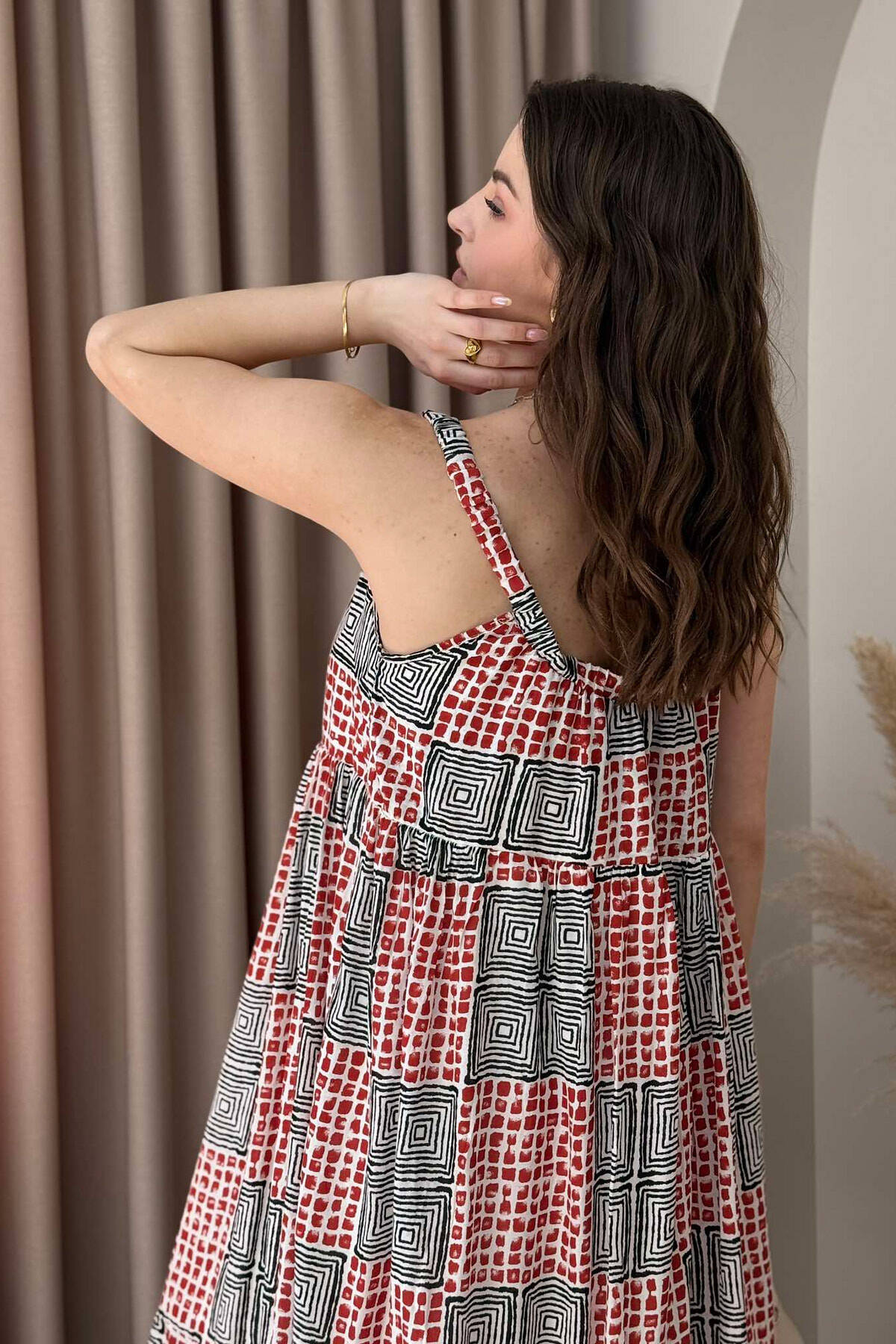THIN STRAPS DIFFERENT DESIGN WOMEN DRESS BRICK/TULLE
