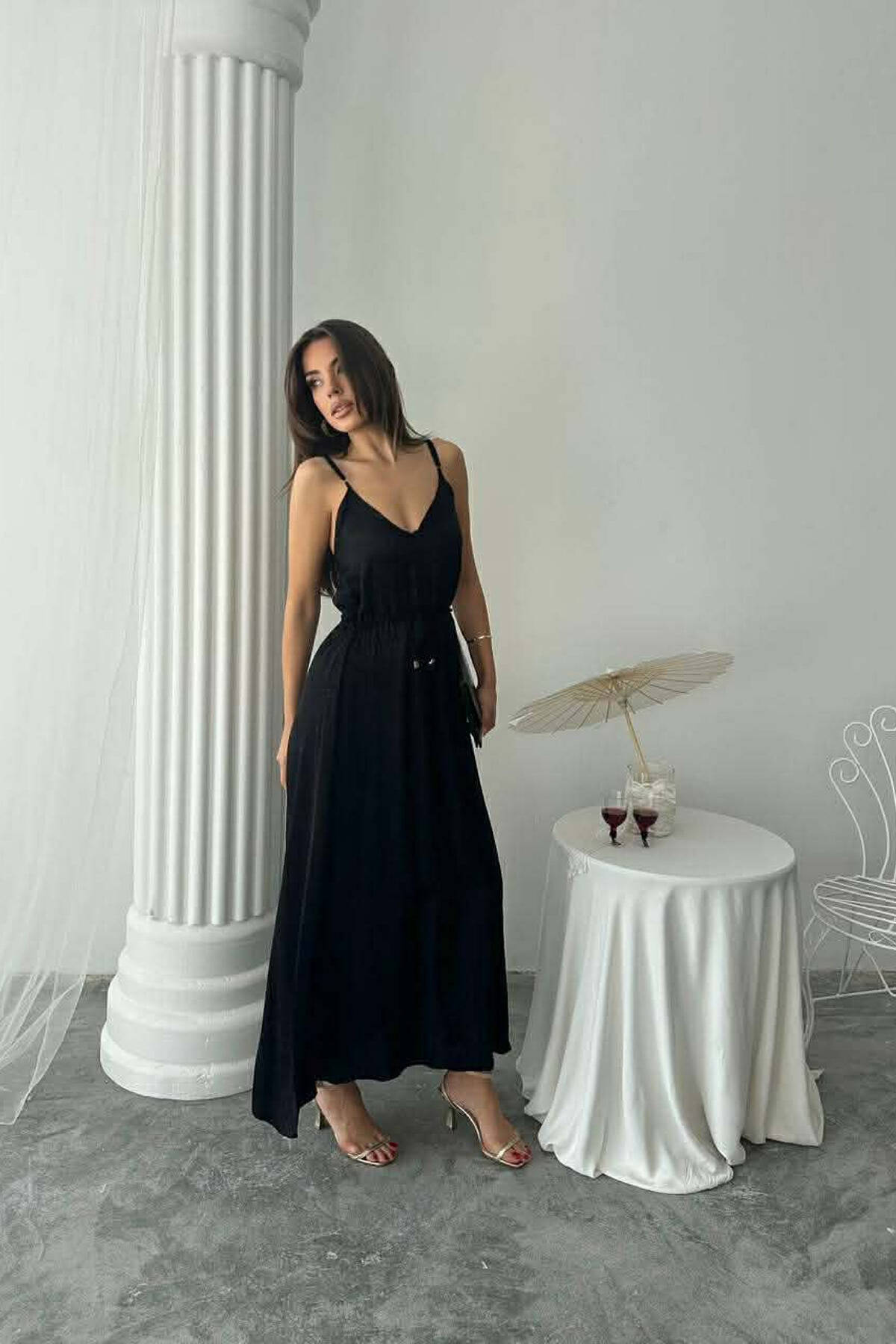 THIN STRAPS LACING DETAIL SHINY WOMAN DRESS BLACK/ E ZEZE