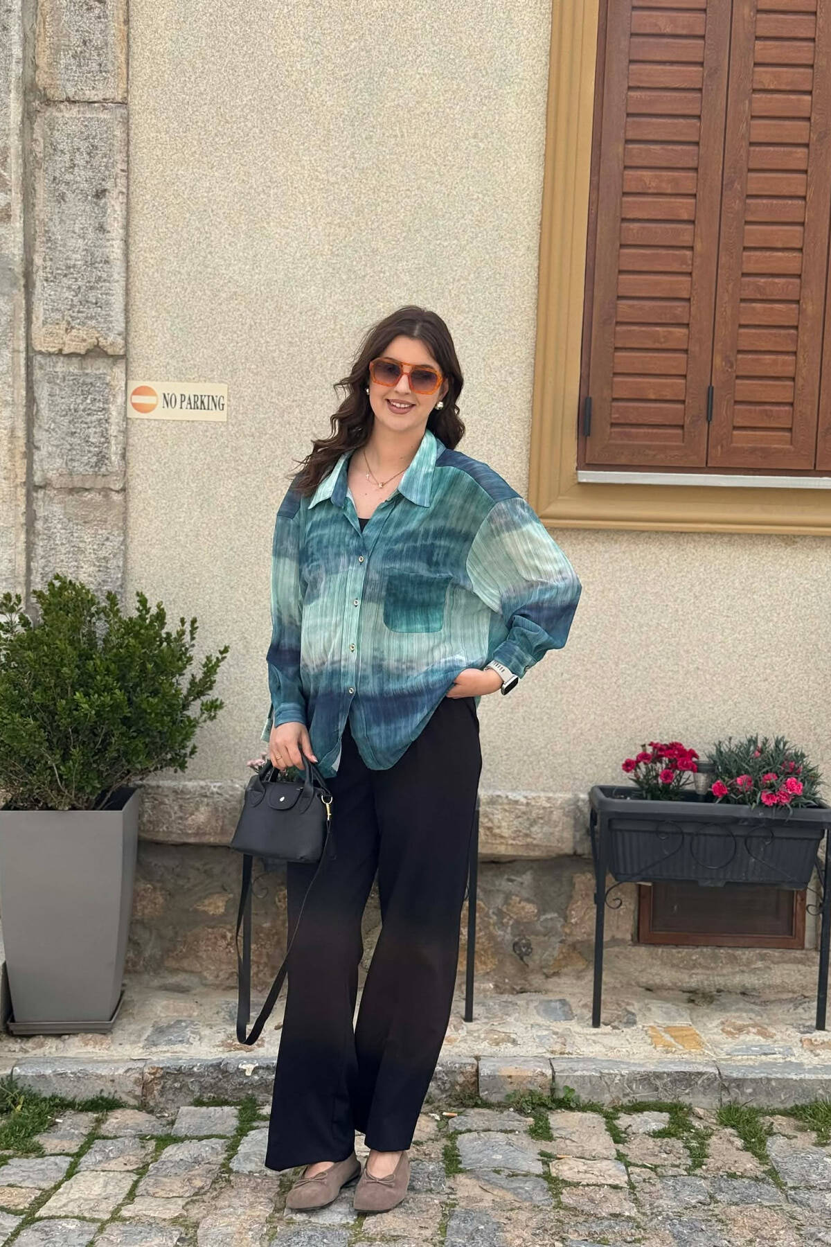TIE-DYE GOLD BUTTONS WOMAN SHIRT GREEN/JESHILE