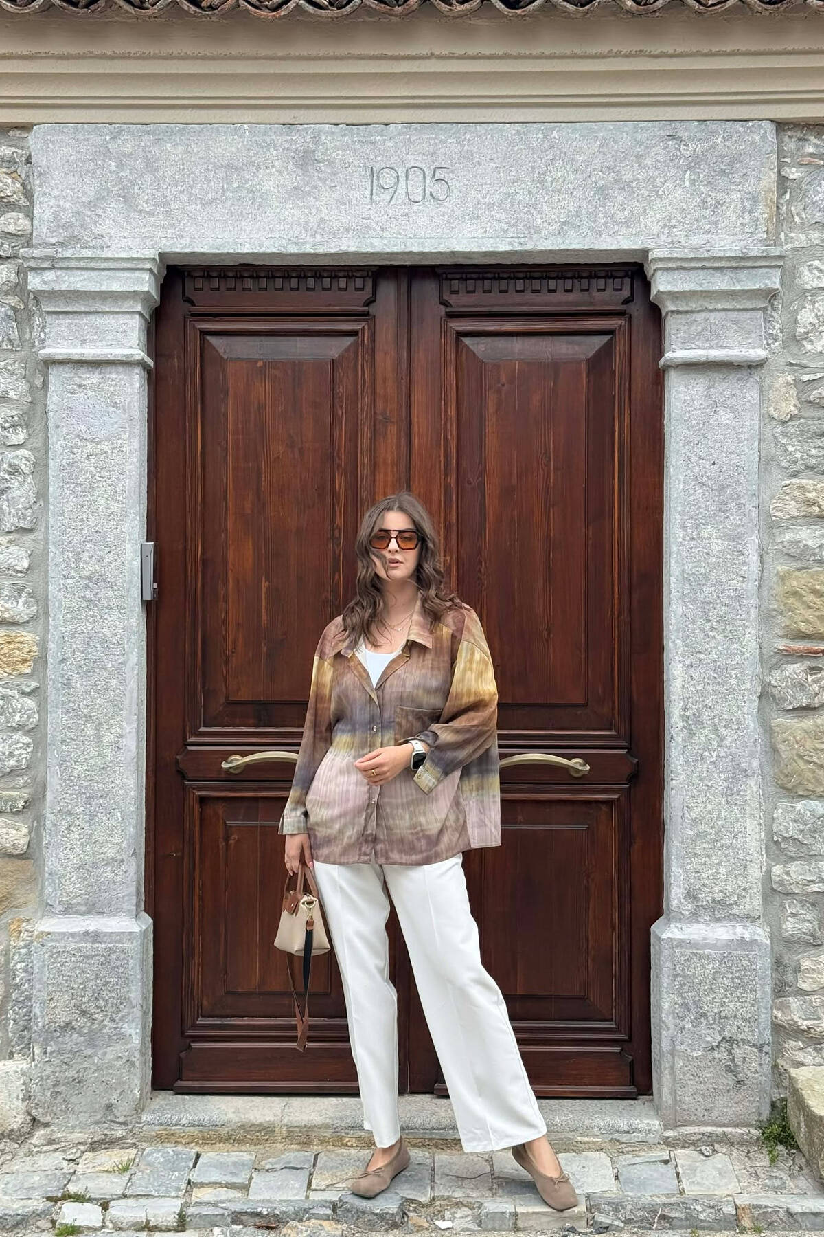 ONE COLOR BELT DETAIL WOMAN SHIRT BROWN/KAFE