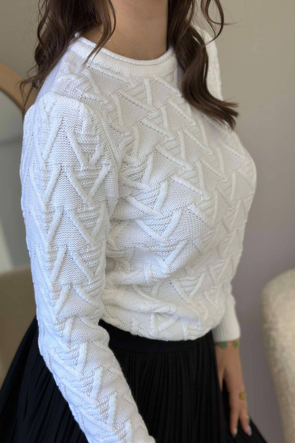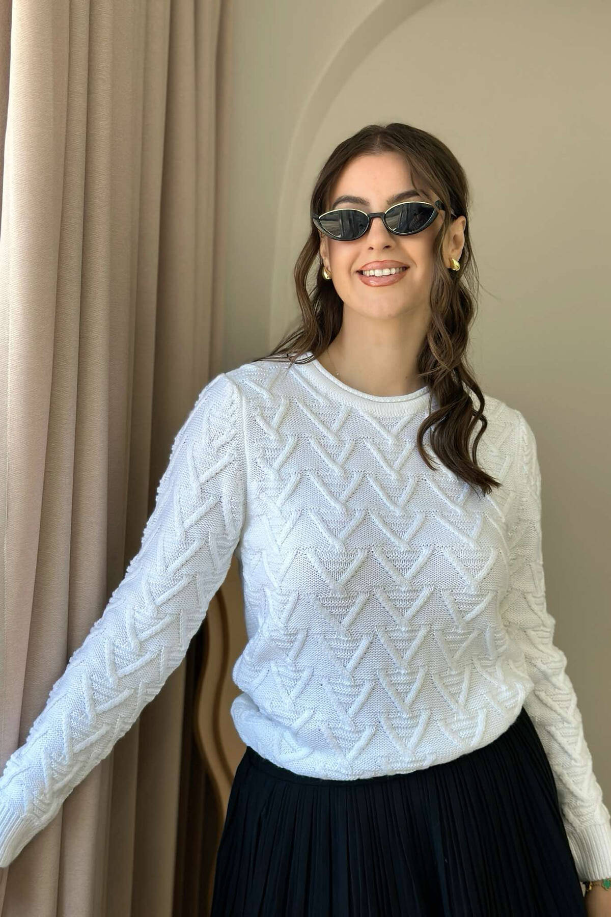 Pulover Me Dizanjo Trekëndëshi Për Femra Në Ngjyrën E Bardhë