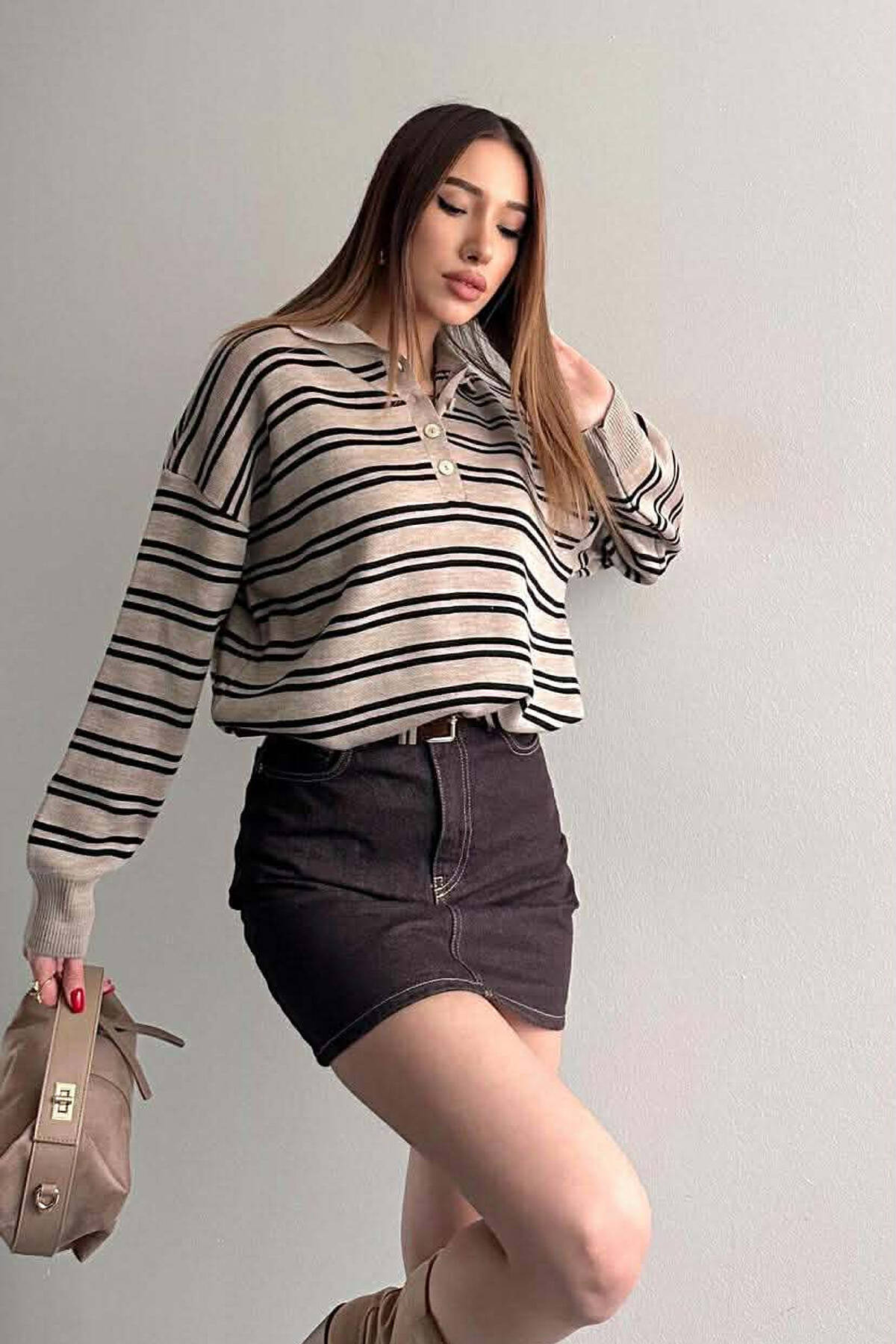 TRIKO E THJESHTE ME JAKE POLO DHE BUTONA PER FEMRA NE NGJYRE KREM
