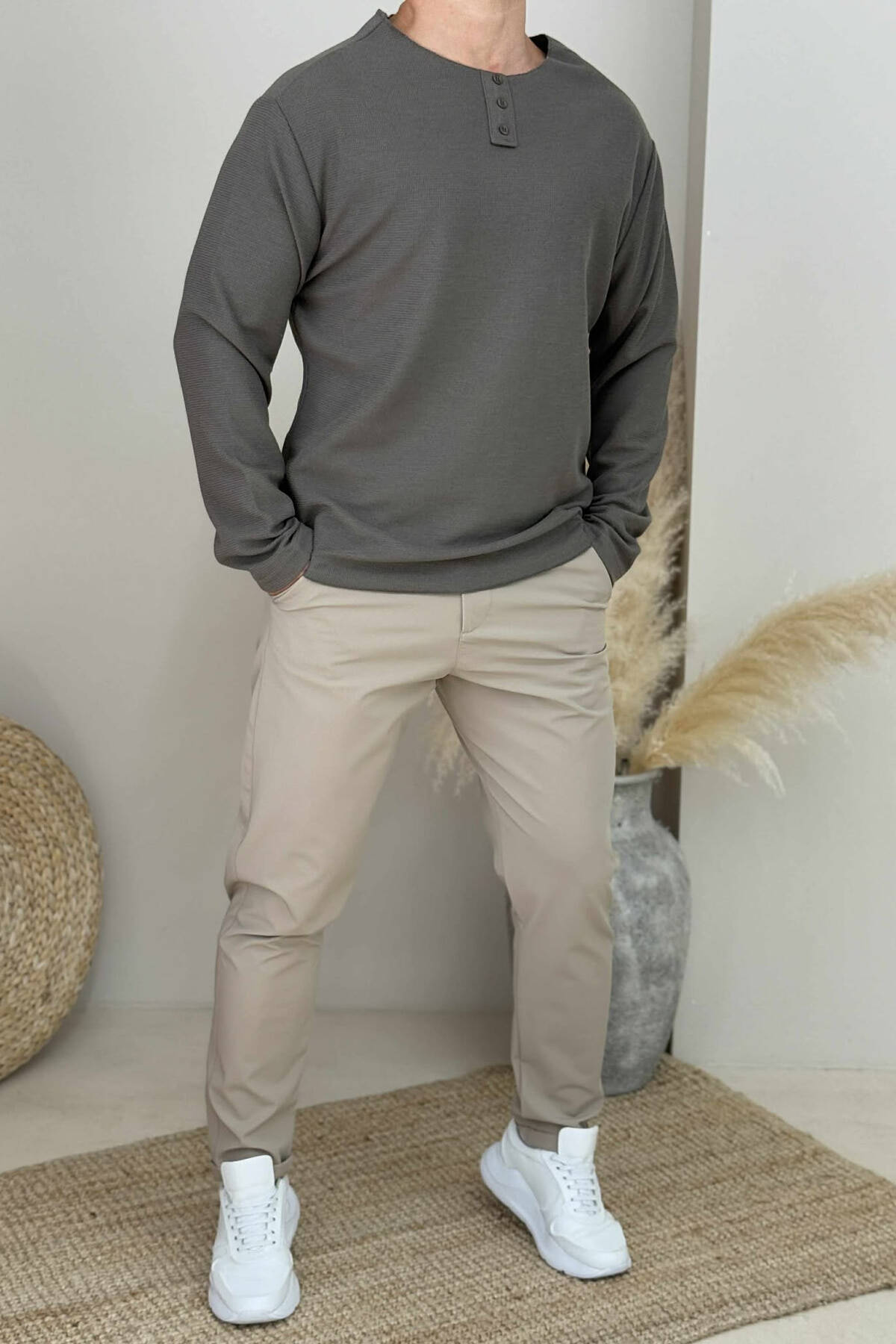 XHAKETË PAMBUKU E THJESHTË NJËNGJYRËSHE PËR MESHKUJ NË NGJYRËN GRI