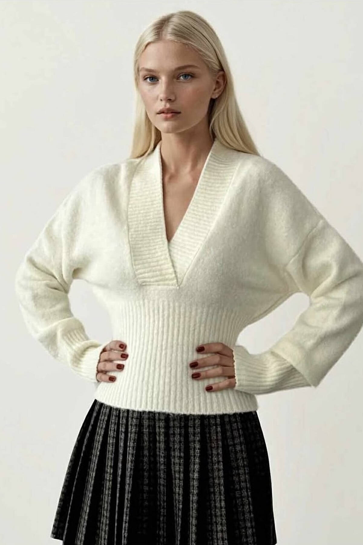 PULOVËR ME SUPE JASHTË PËR FEMRA NË NGJYRË TË BARDHË