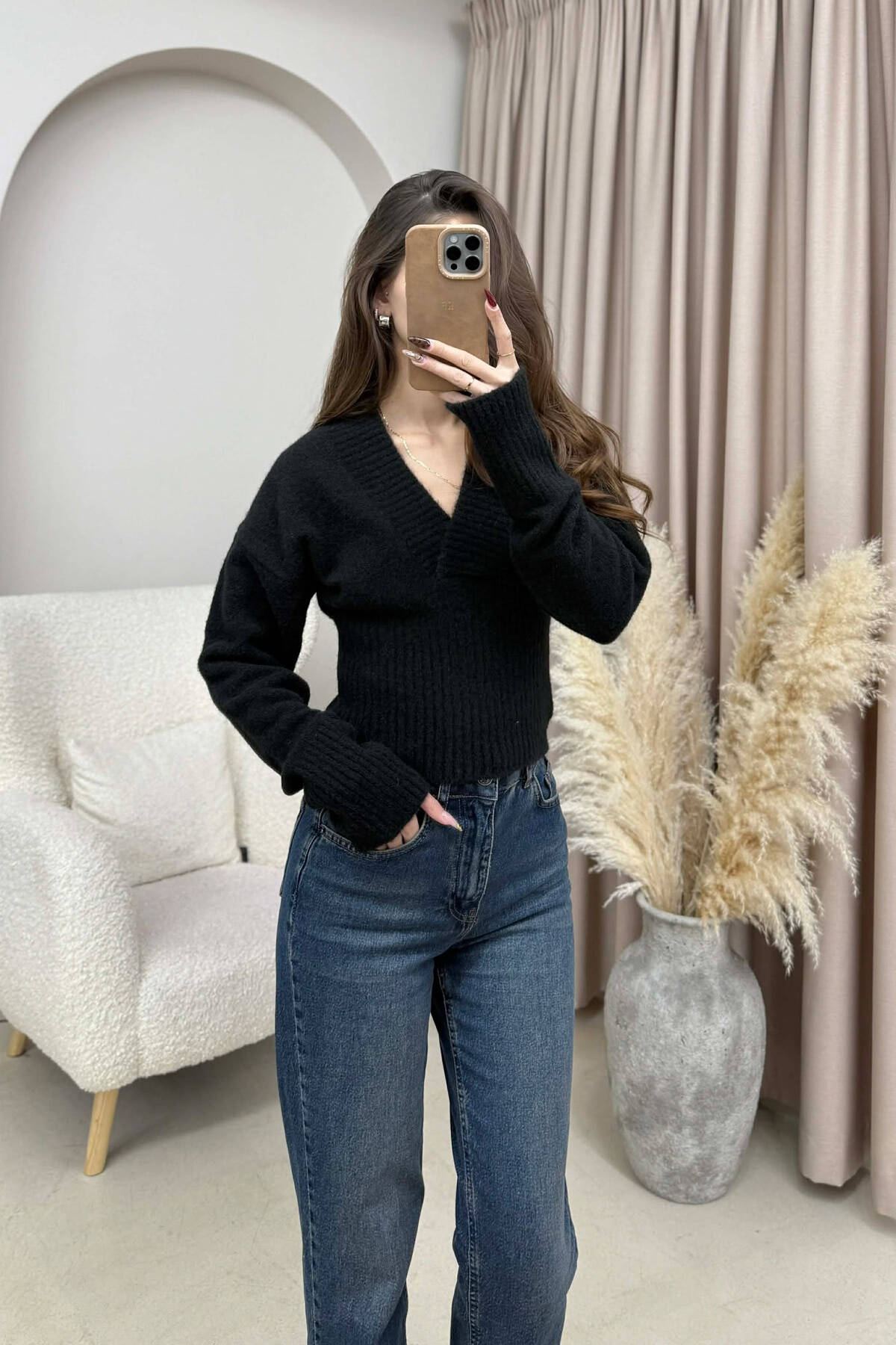TRIKO E THJESHTË NJË NGJYRËSHE ME JAKË V PËR FEMRA NË NGJYRE TE ZEZE
