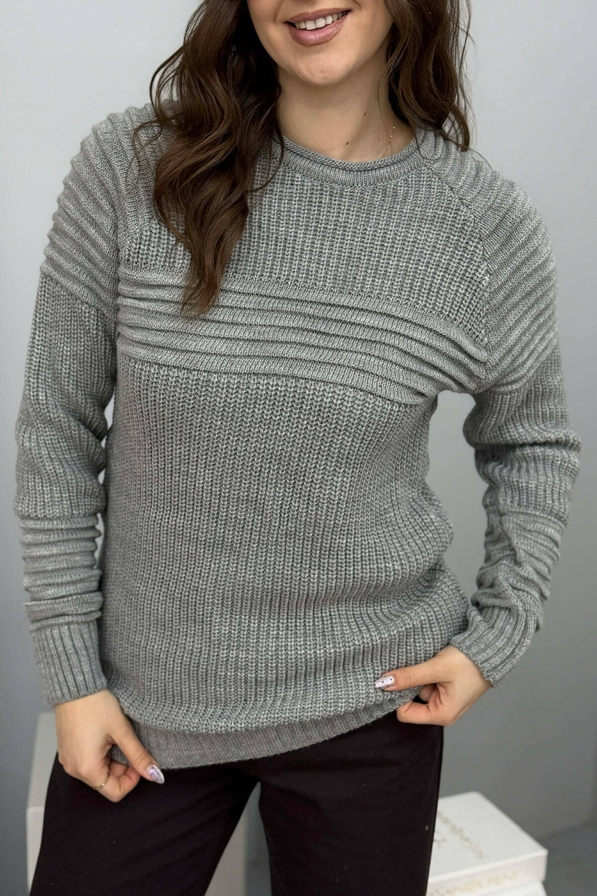 BLUZE NJE NGJYRESHE ME DETAJ DANTELLE PER FEMRA NE NGJYRE GRI
