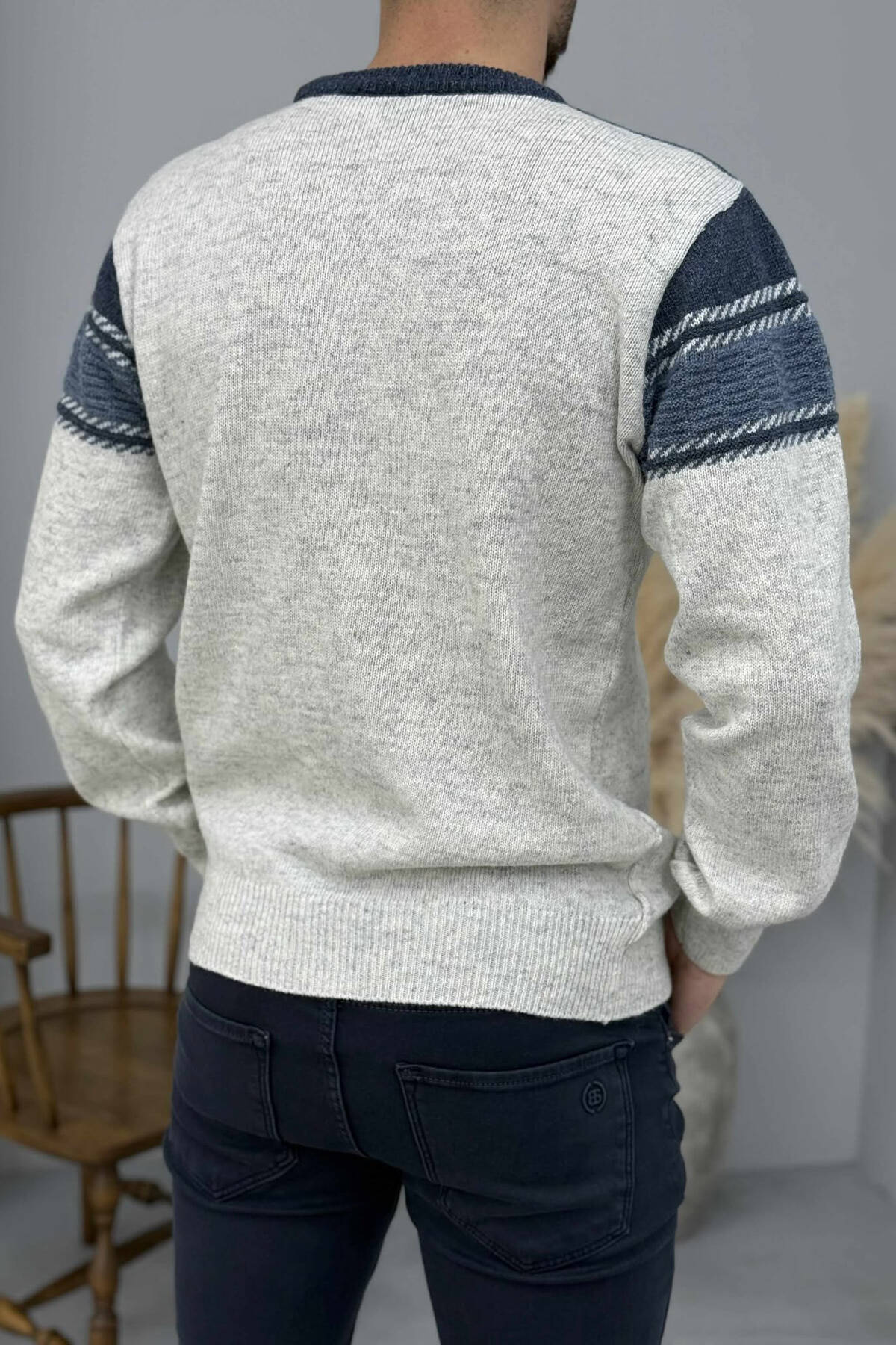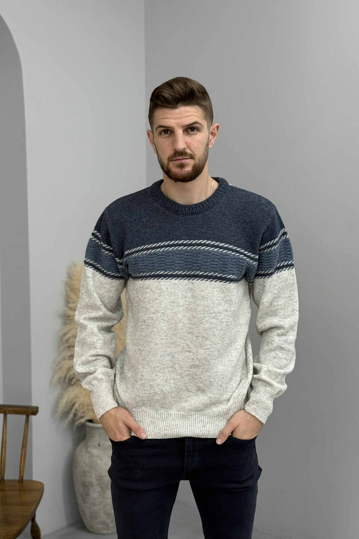 ROUND NECK STRIPED MEN SWEATER GREEN/JESHILE