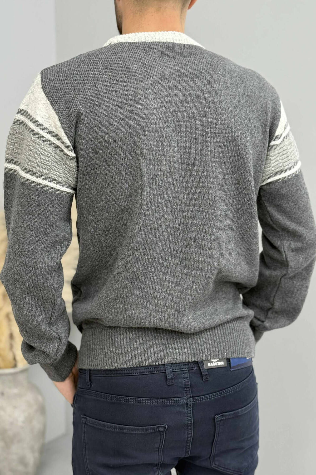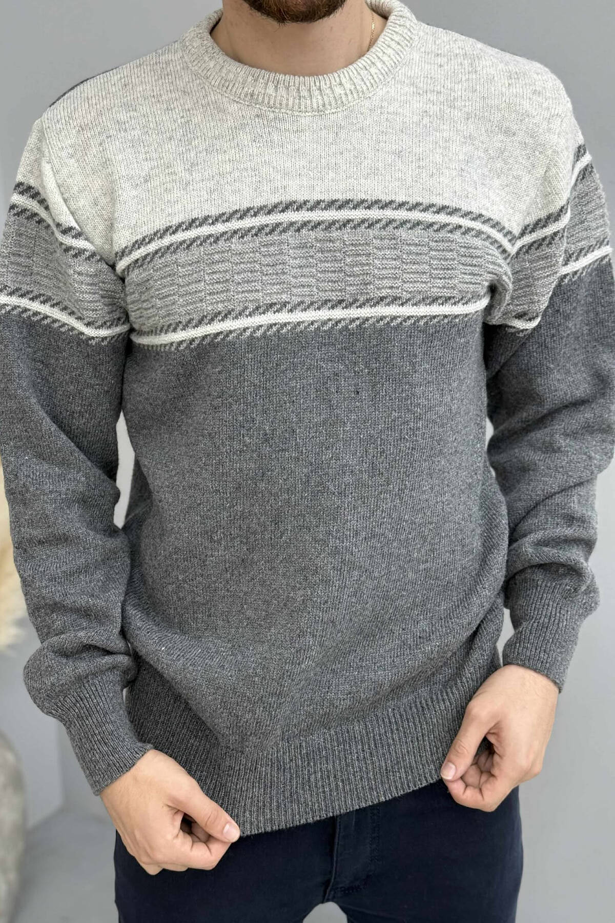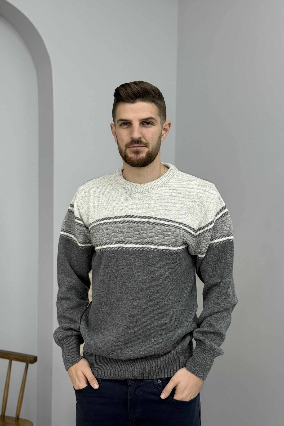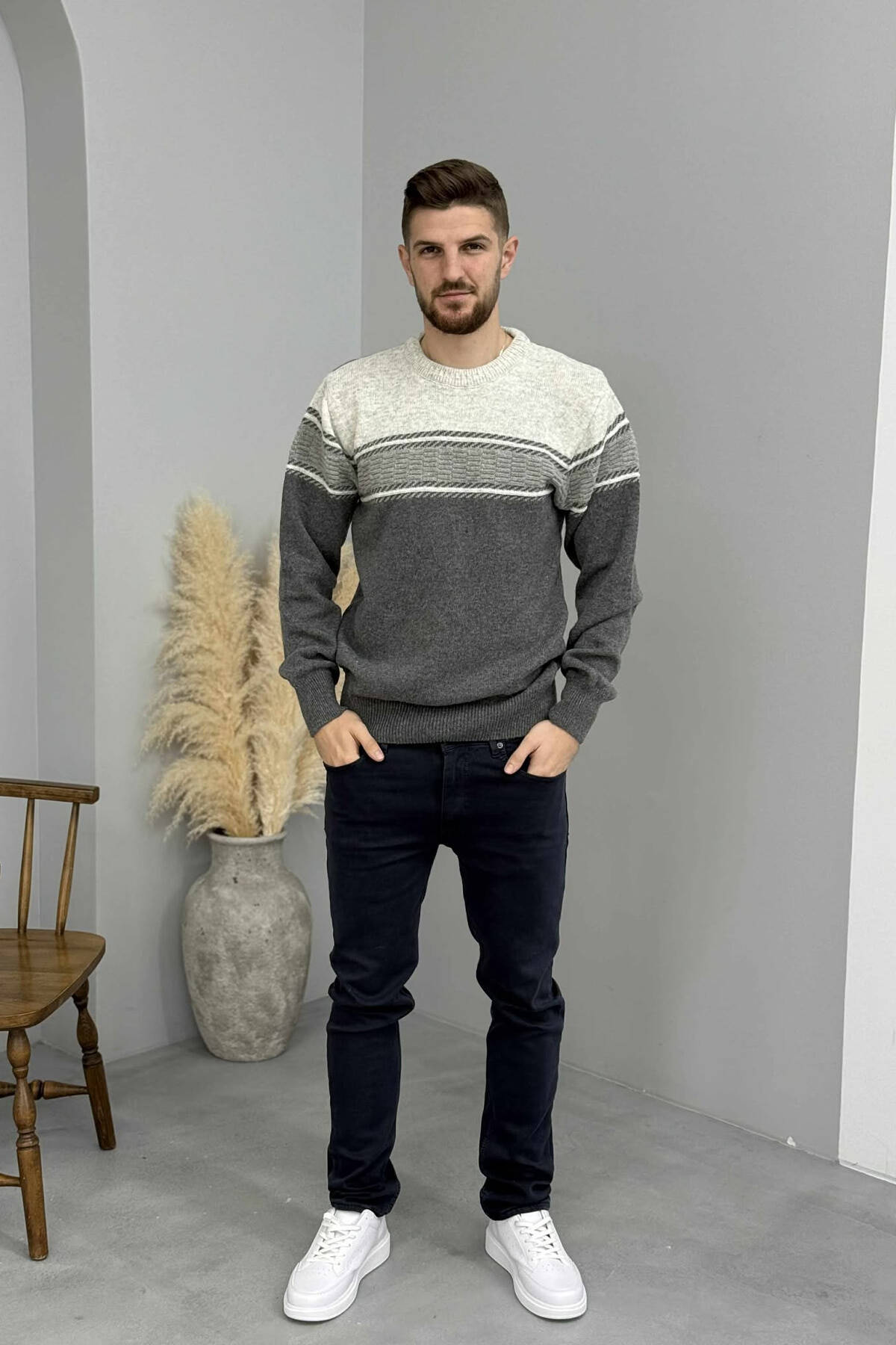 ROUND NECK STRIPED MEN SWEATER GREEN/JESHILE