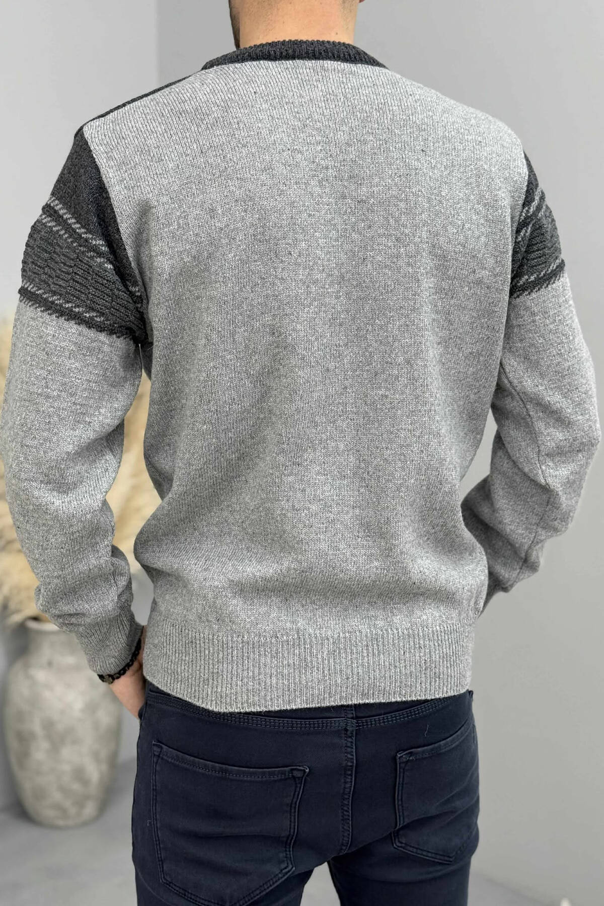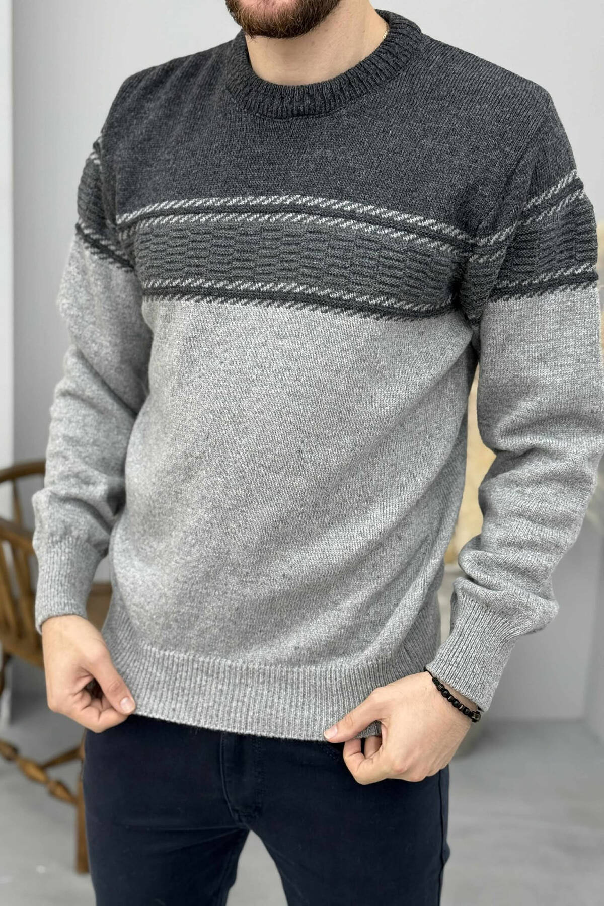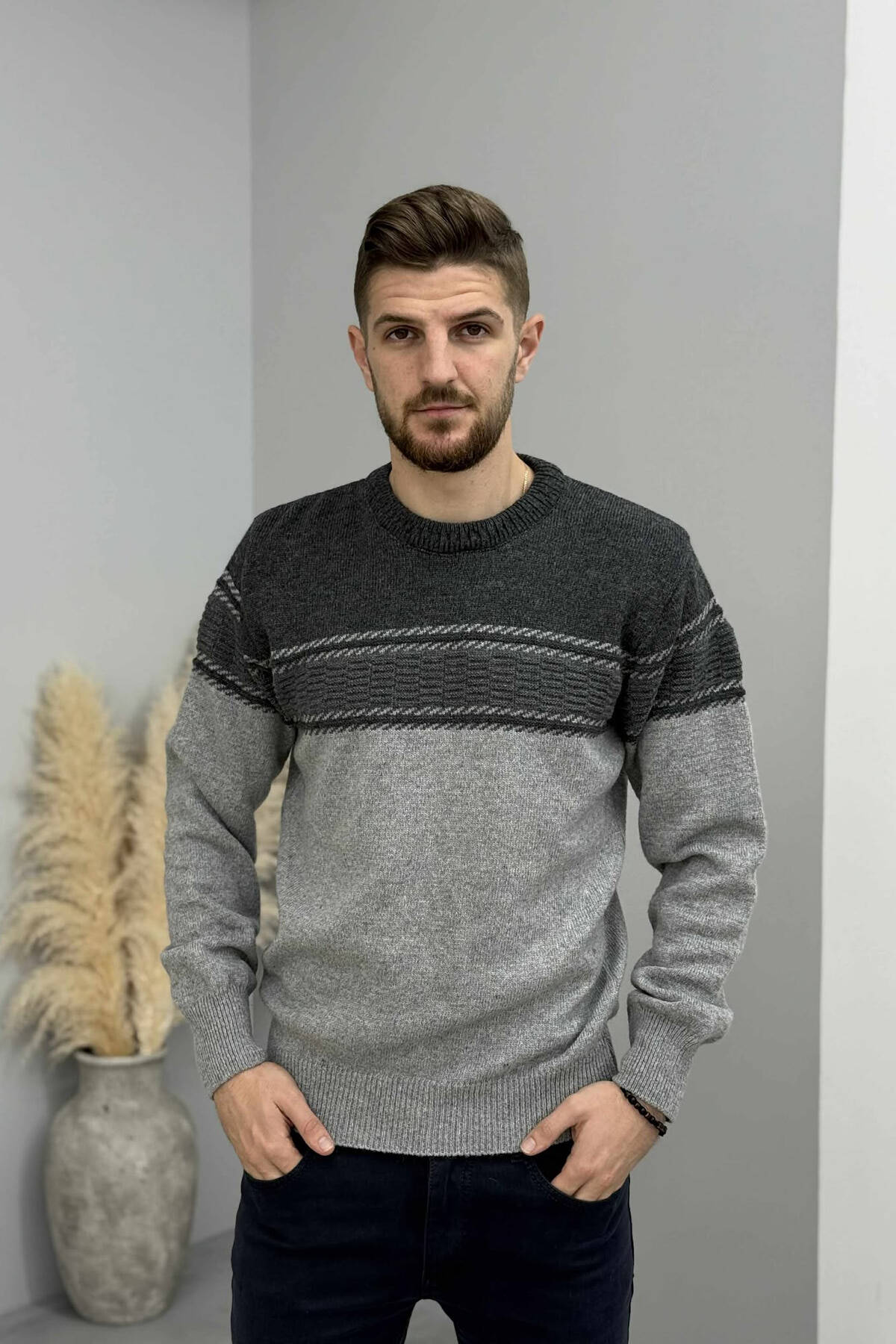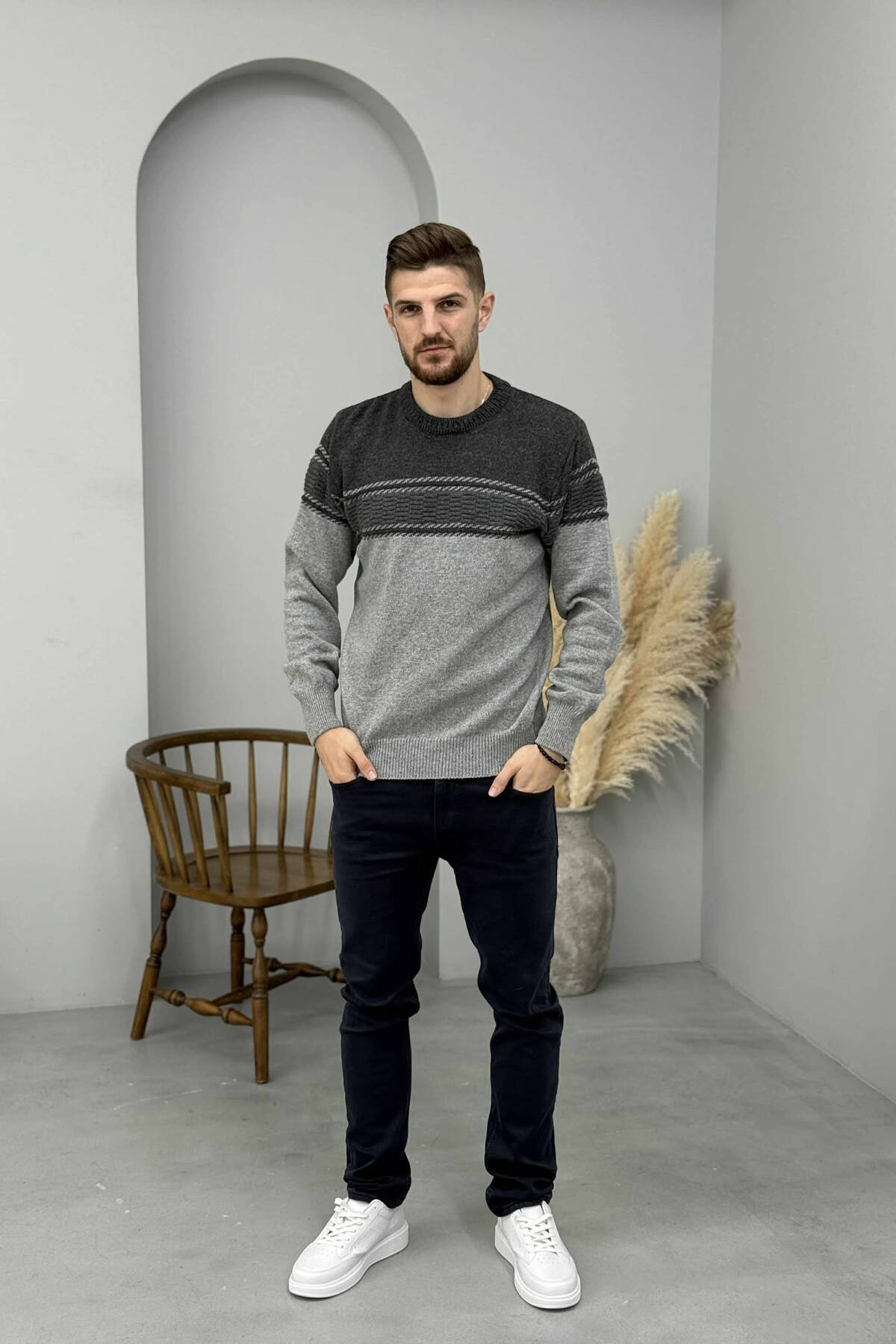 ROUND NECK STRIPED MEN SWEATER GREEN/JESHILE
