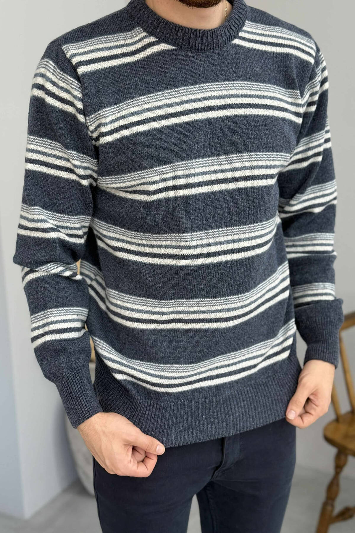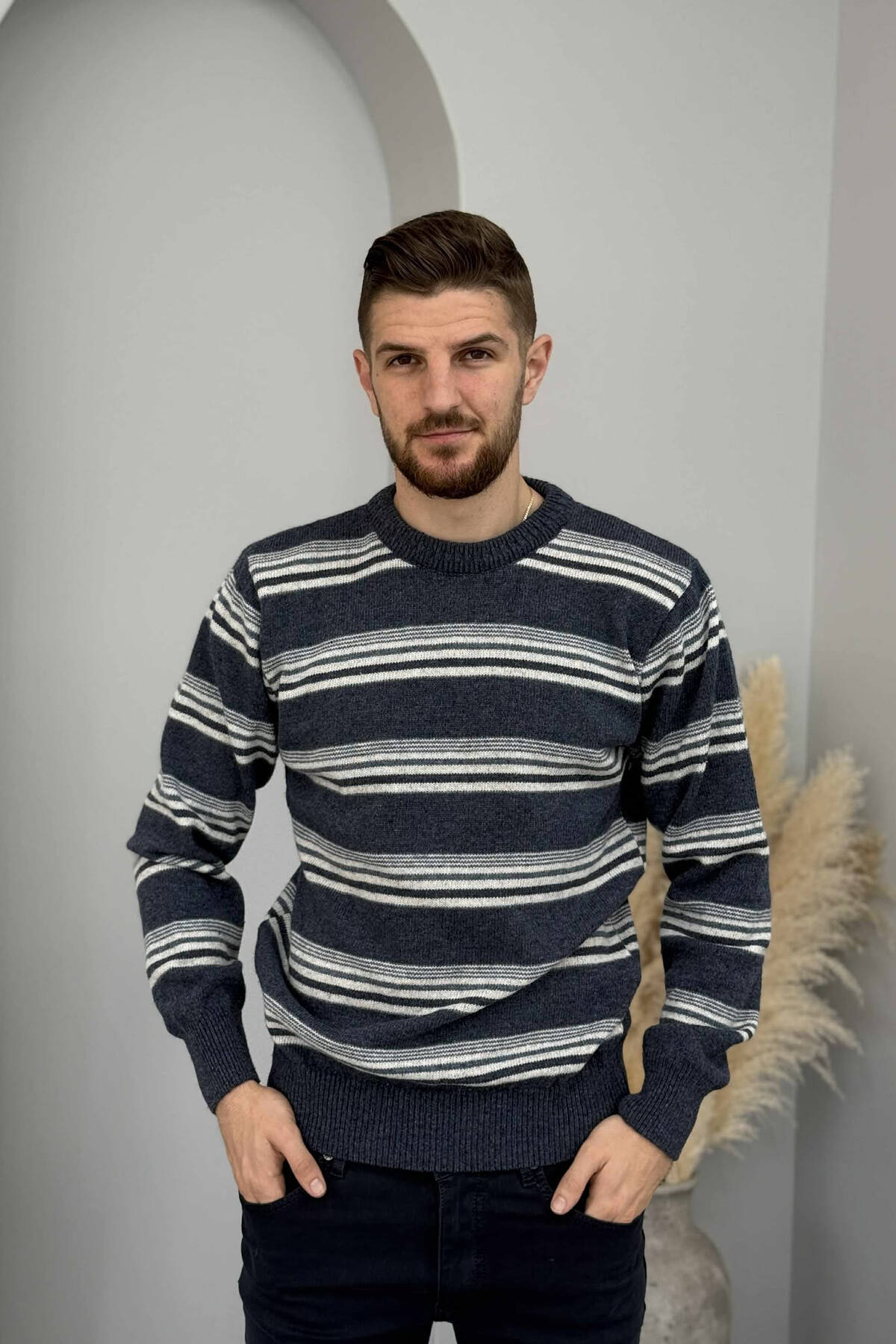 ROUND NECK STRIPED MEN SWEATER BLUE/BLU