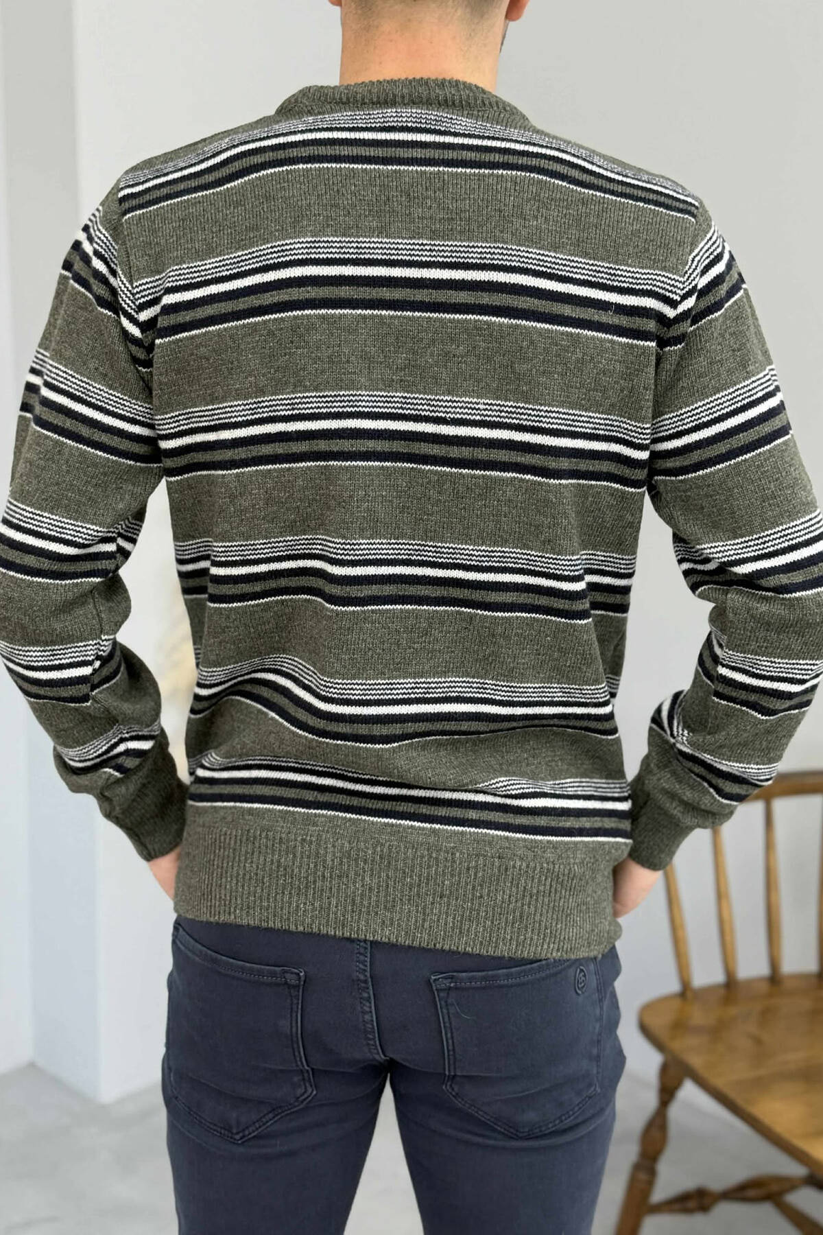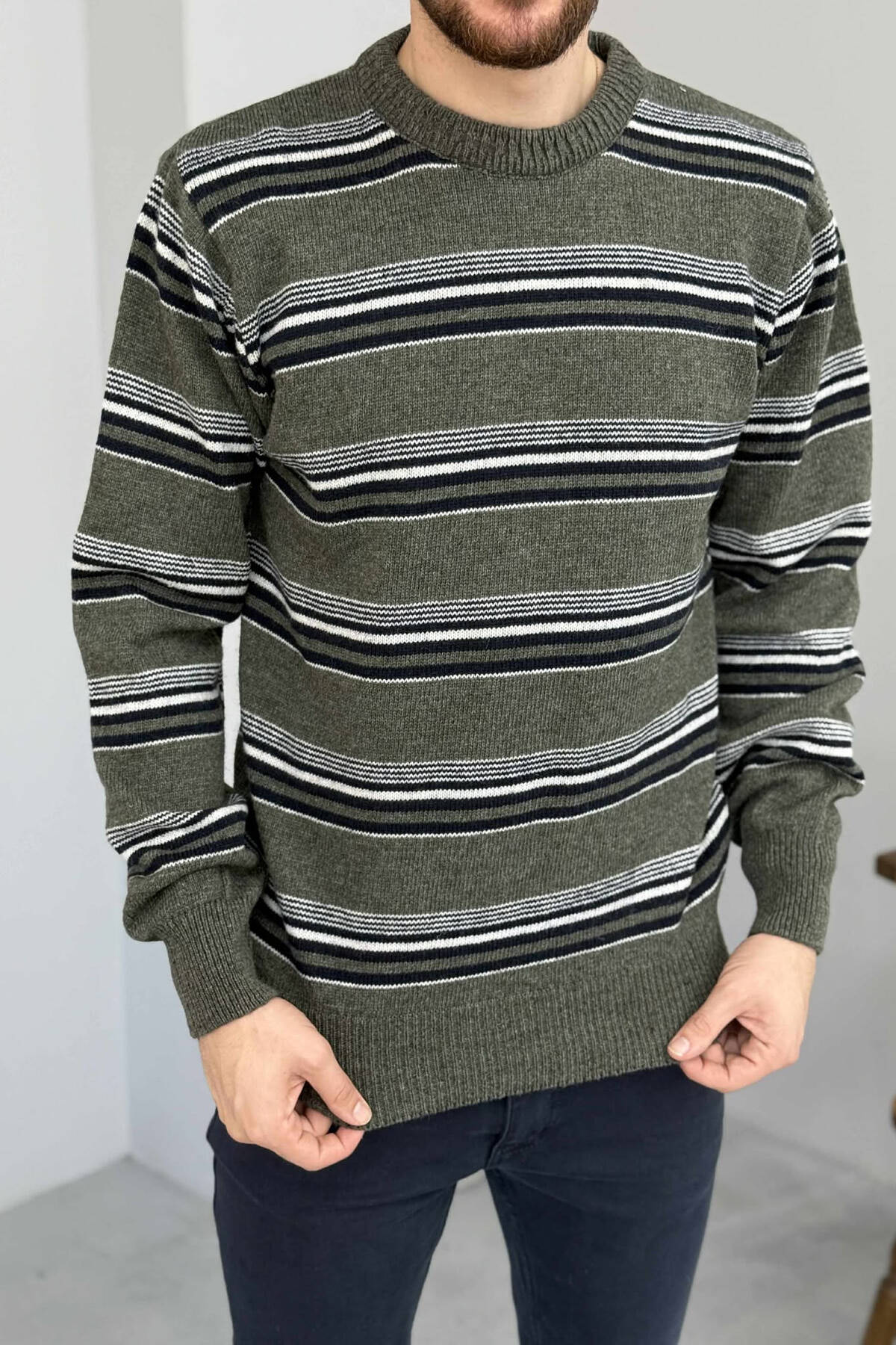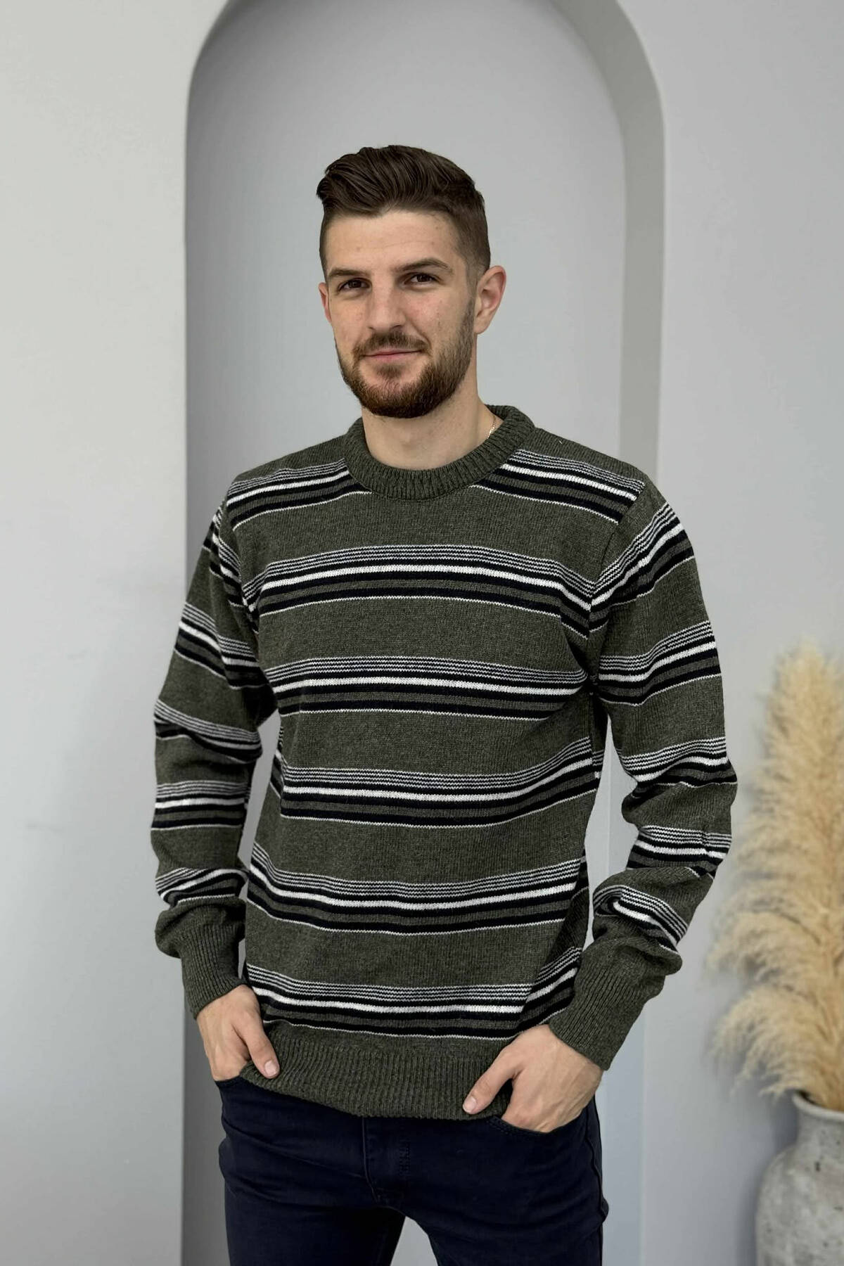 ROUND NECK STRIPED MEN SWEATER GREEN/JESHILE