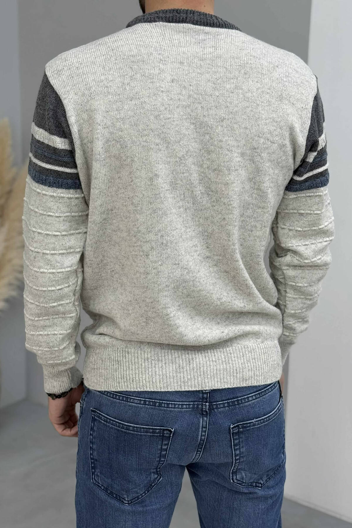 ROUND NECK STRIPED MEN SWEATER GREEN/JESHILE