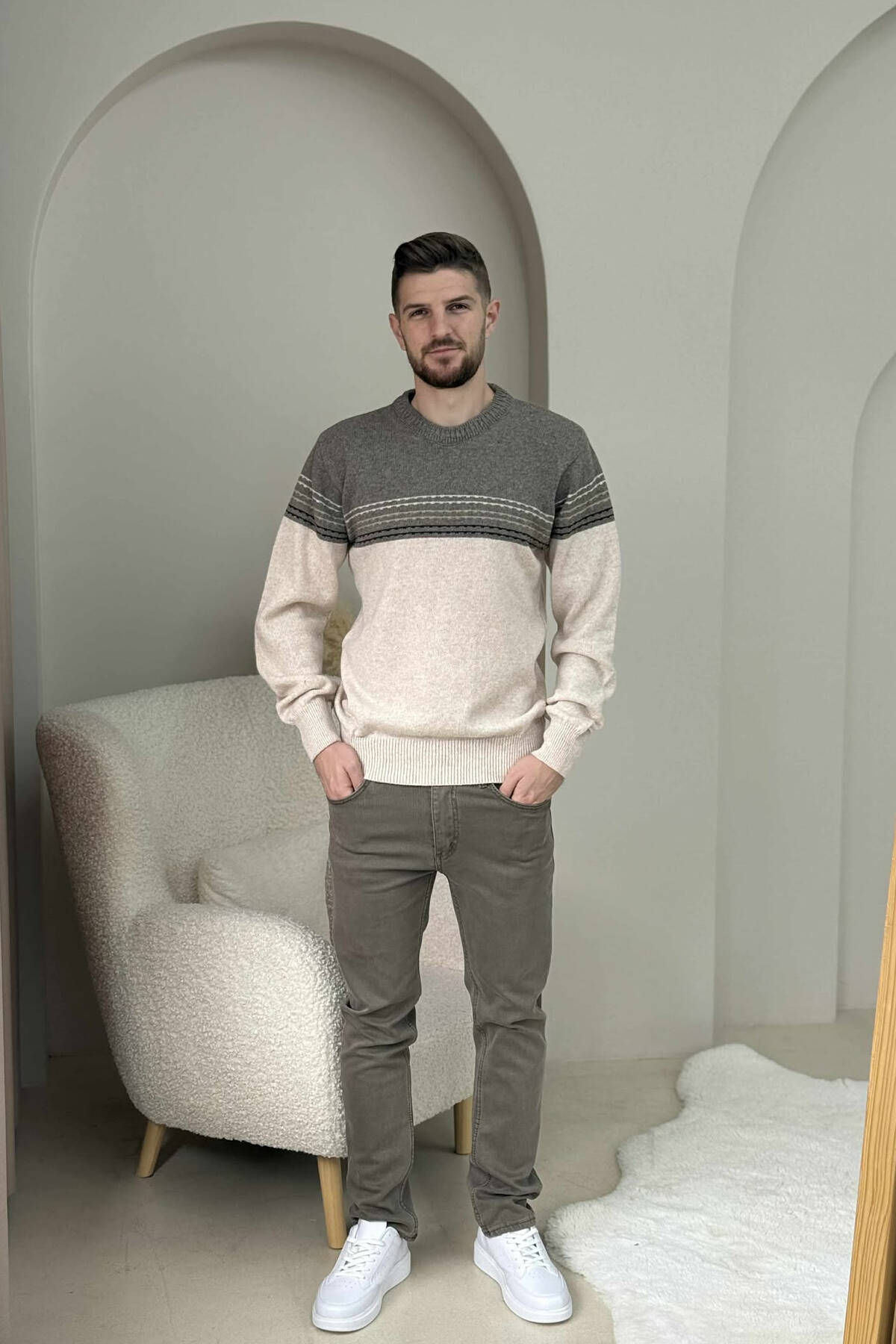 ROUND NECK STRIPED MEN SWEATER GREEN/JESHILE