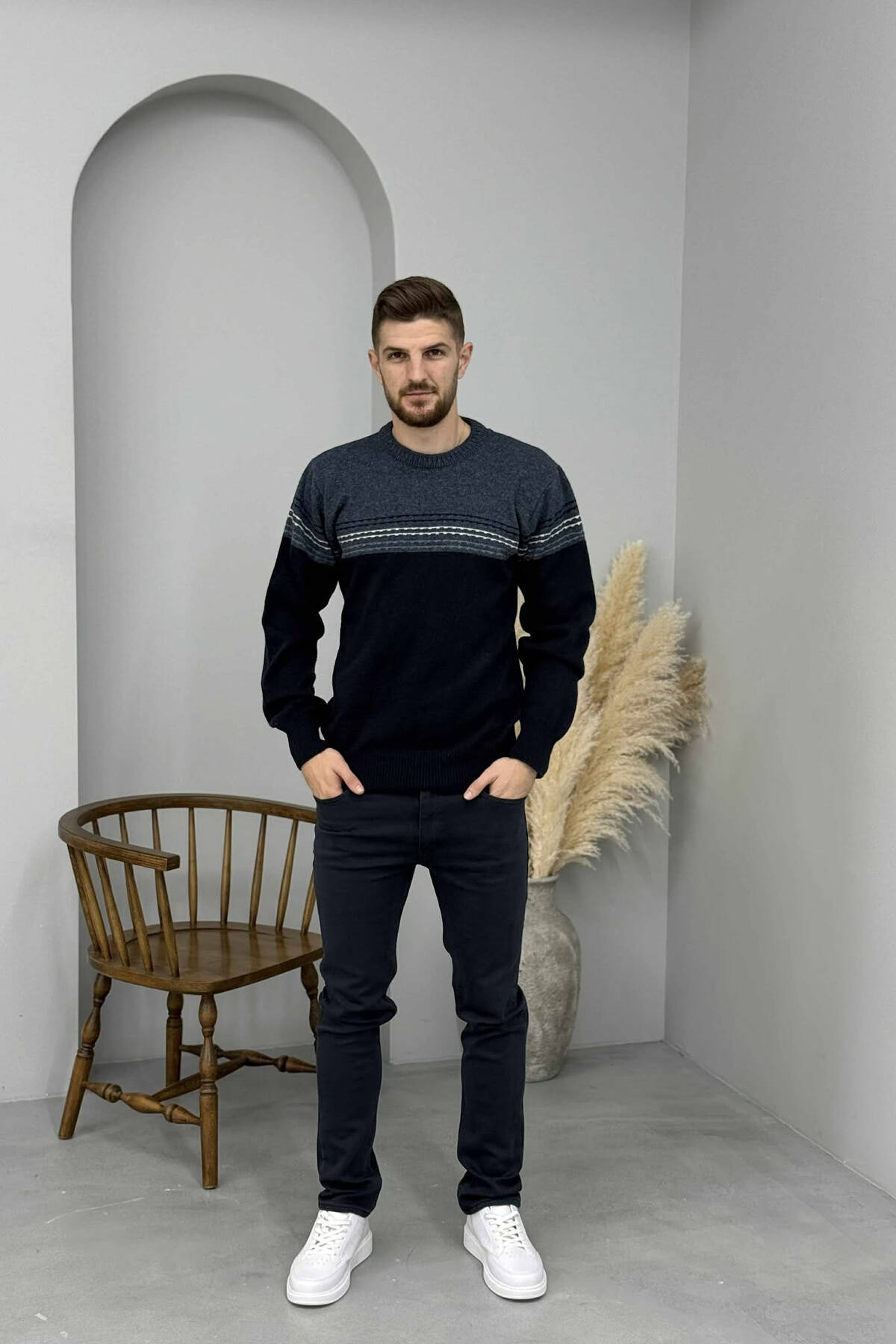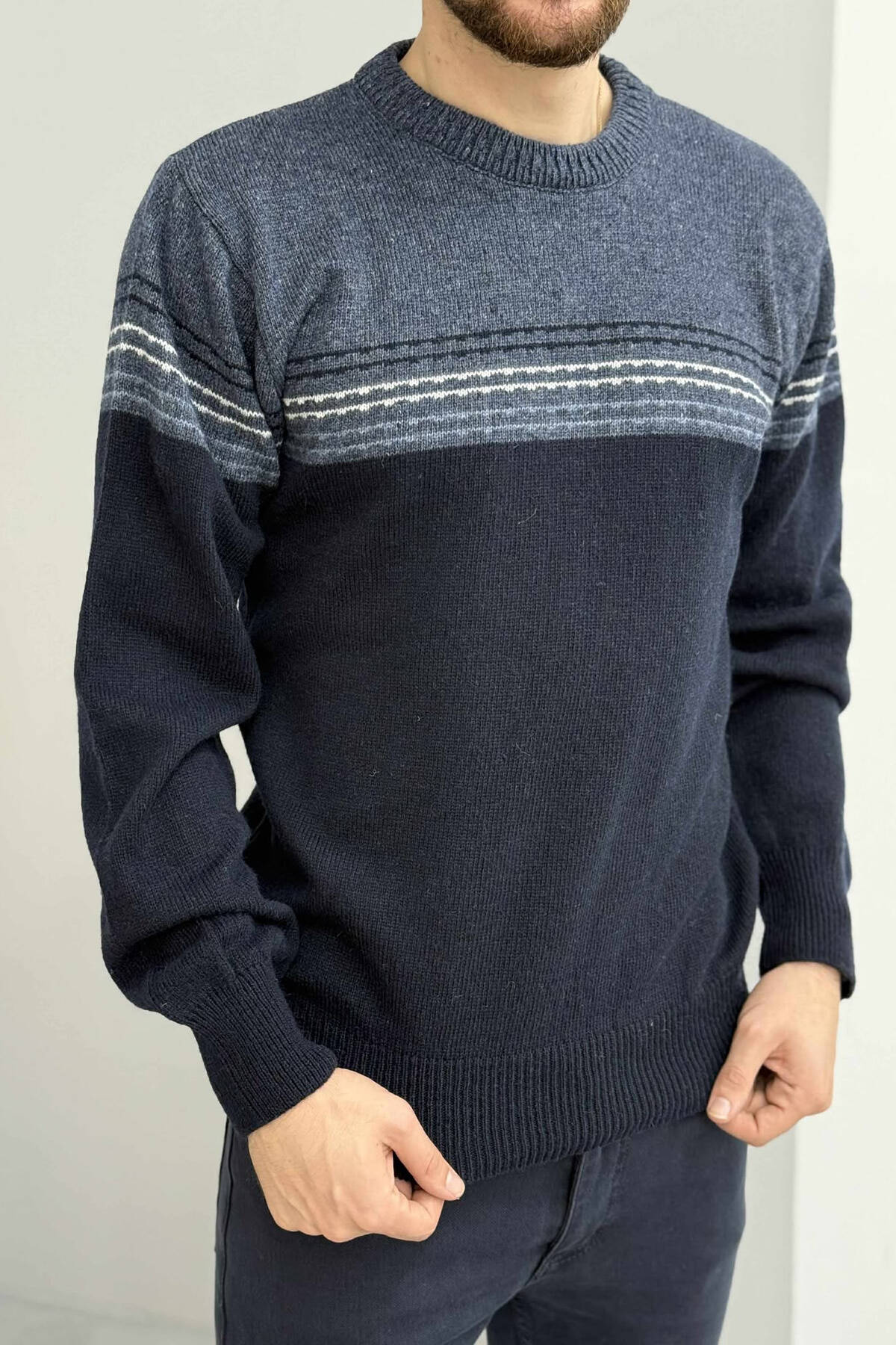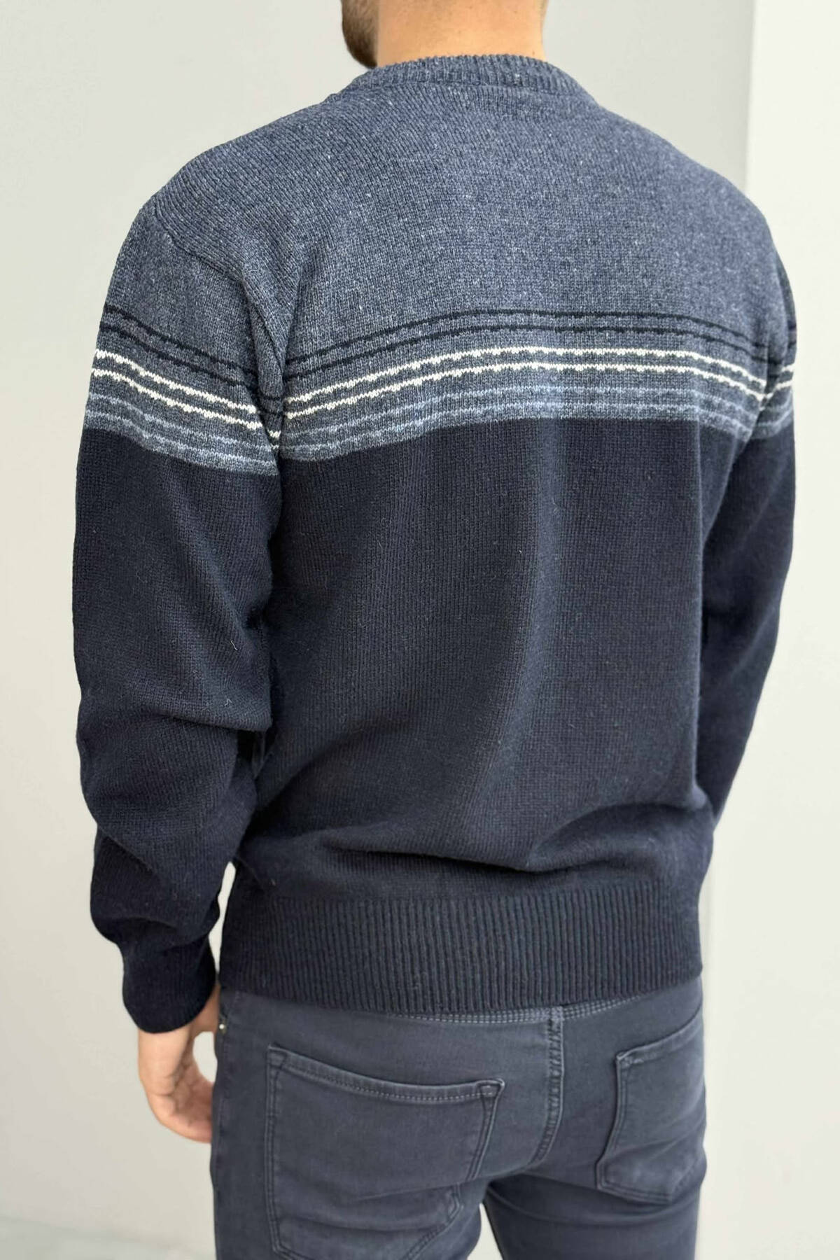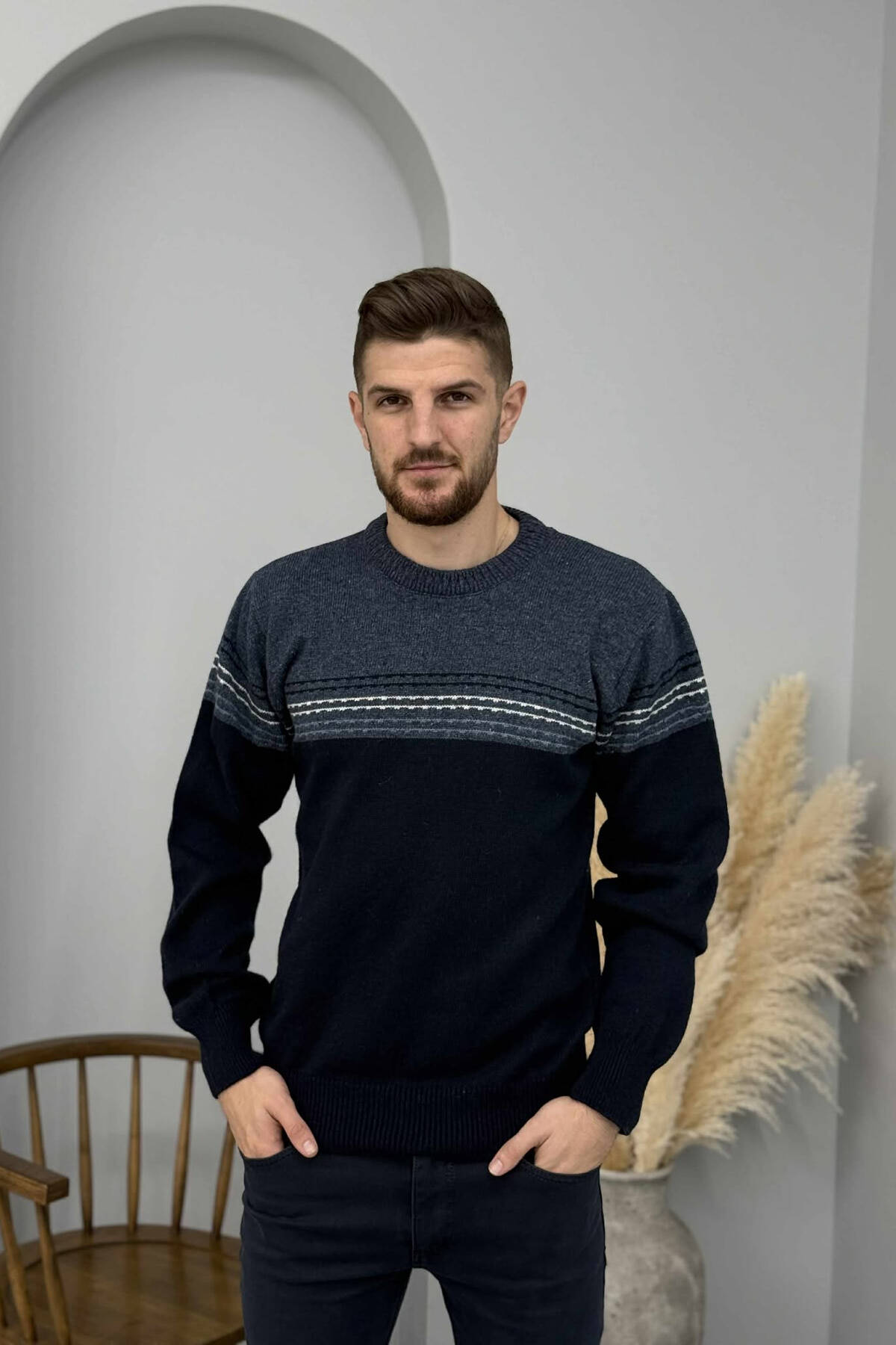 ROUND NECK STRIPED MEN SWEATER BLUE/BLU