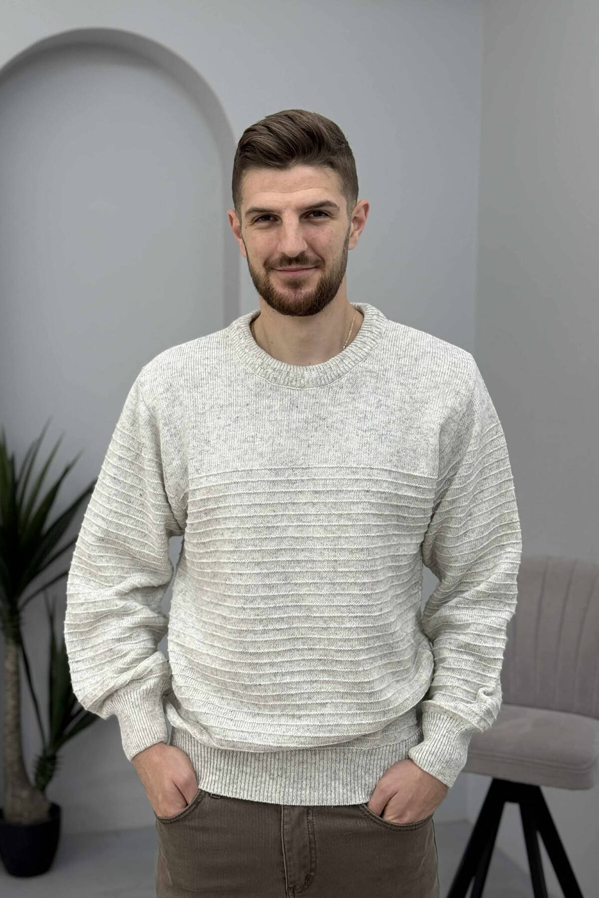 TRIKO E THURRUR NJË NGJYRËSHE PËR MESHKUJ NË NGJYRË GRI TË ZBARDHUR