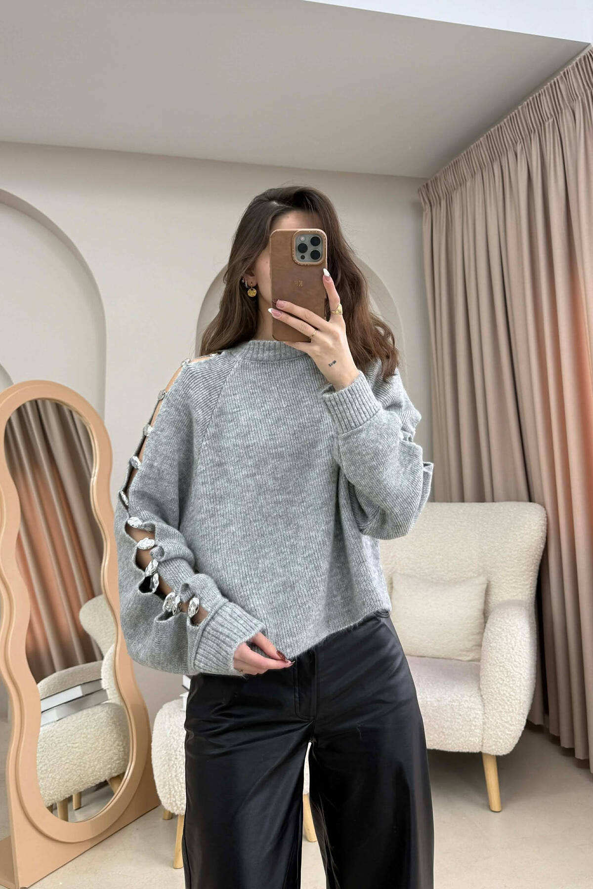 TRIKO ME DETAJ KOPSASH NE MENGE PER FEMRA NE NGJYRE GRI TE ZBARDHUR