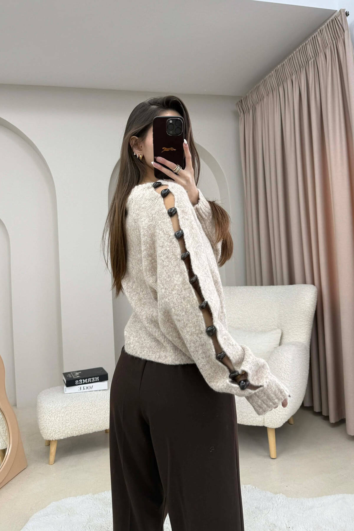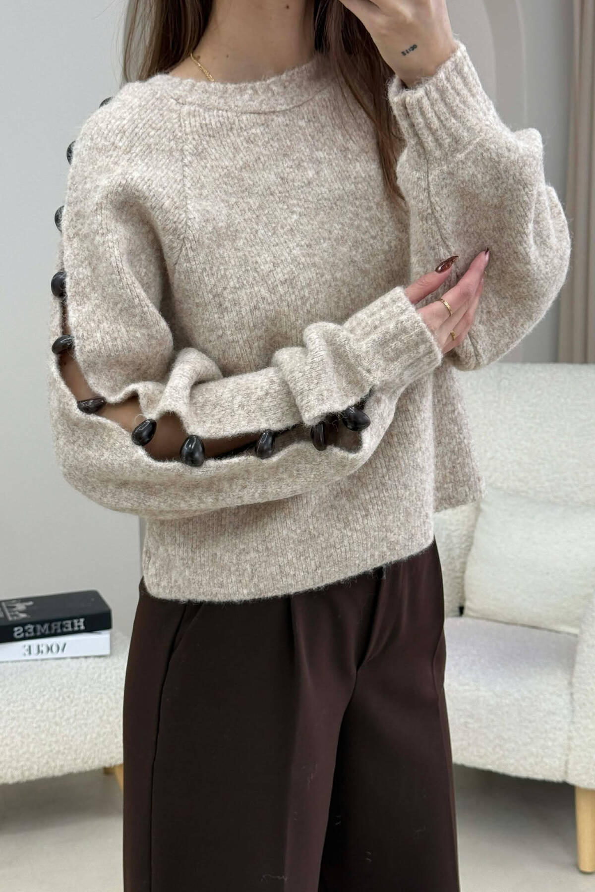 PULOVER ME JAKE RRETHORE DHE XHEPA PER FEMRA NE NGJYRE KREM