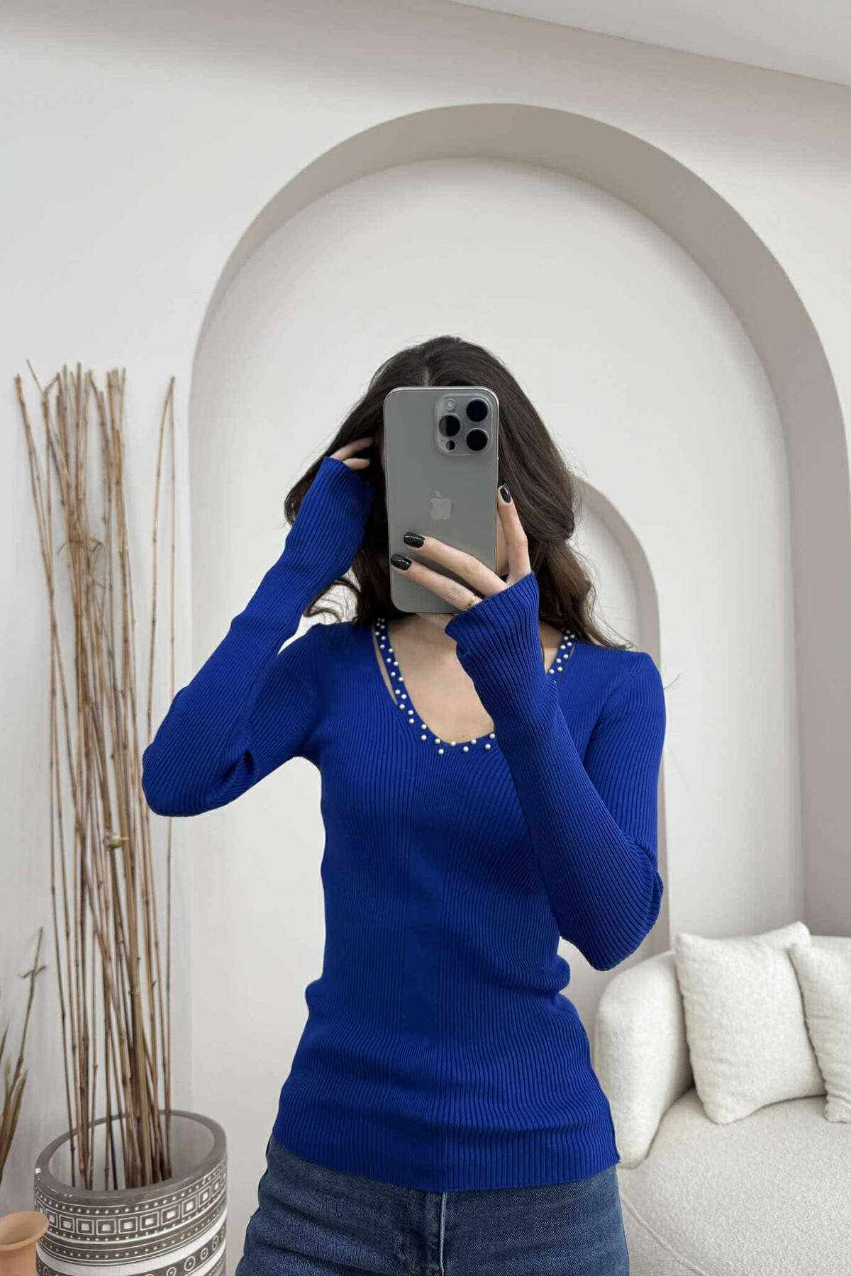 TRIKO ME DETAJIN E PERLAVE PËR FEMRA NË NGJYRËN BLU