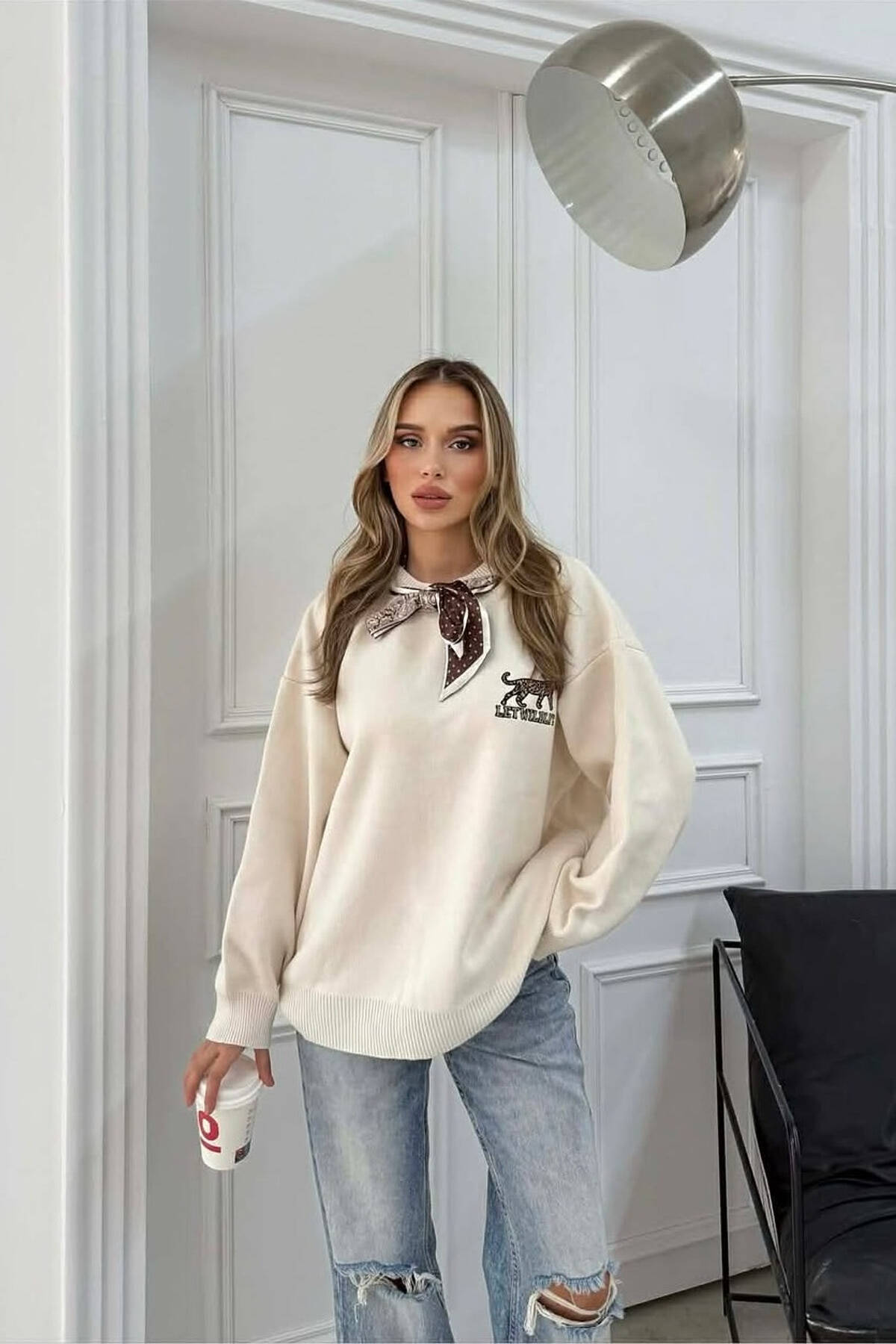 TRIKO ME DETAJIN E SHALLIT DHE ME IMAZH LEOPARDI PER FEMRA NE NGJYRE KREM